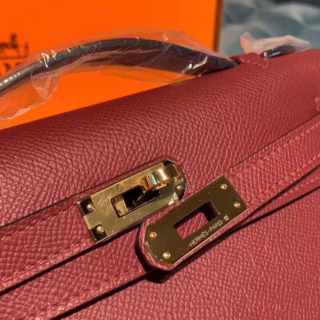 Crafted in Epsom leather with sophisticated Gold hardware belted closure. Intended to be carried in hand as a clutch, there is small strap located atop the Kelly pochette. Box Calf interior. Made in France. Dust bag and gift box included.