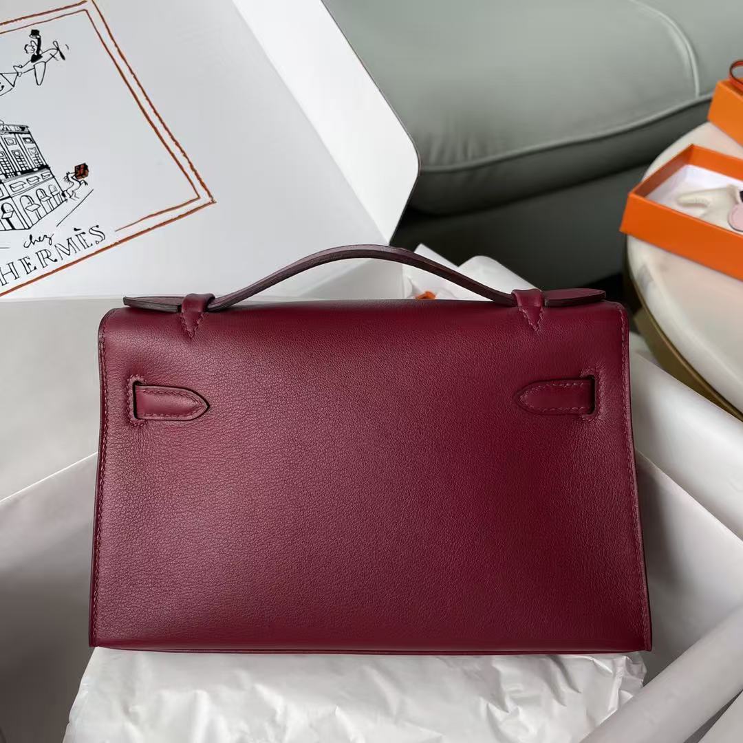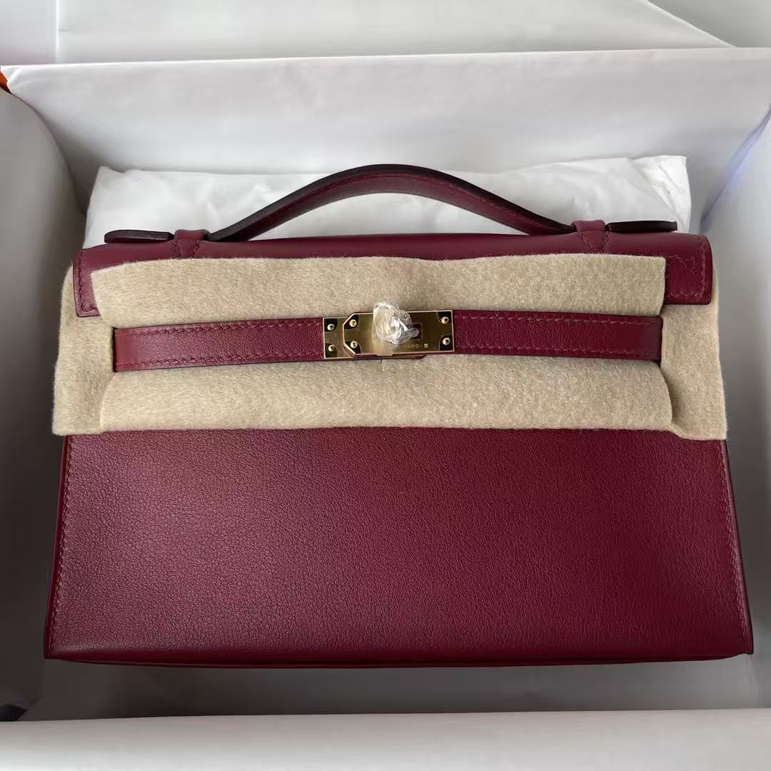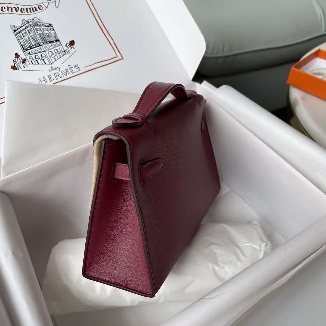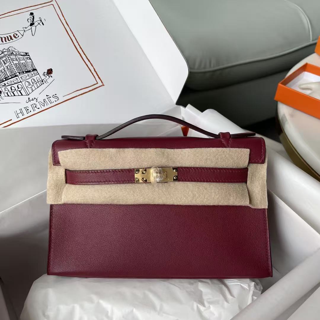 Hermès Bordeaux Mini Kelly Pochette Swift leather Gold hardware