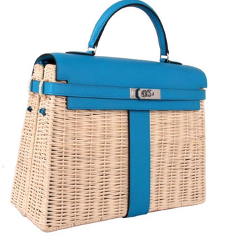 Hermes Add to Cart Hermes Limited Edition 3Z Bleu Saint Cyr Picnic Kelly 35 Wicker Palladium Hardware MSRP: Was: Now: £55.000,00 Condition: Pristine Measurements Width (at bottom): 36.5cmHeight: 25 cm Depth: 14 cmS…