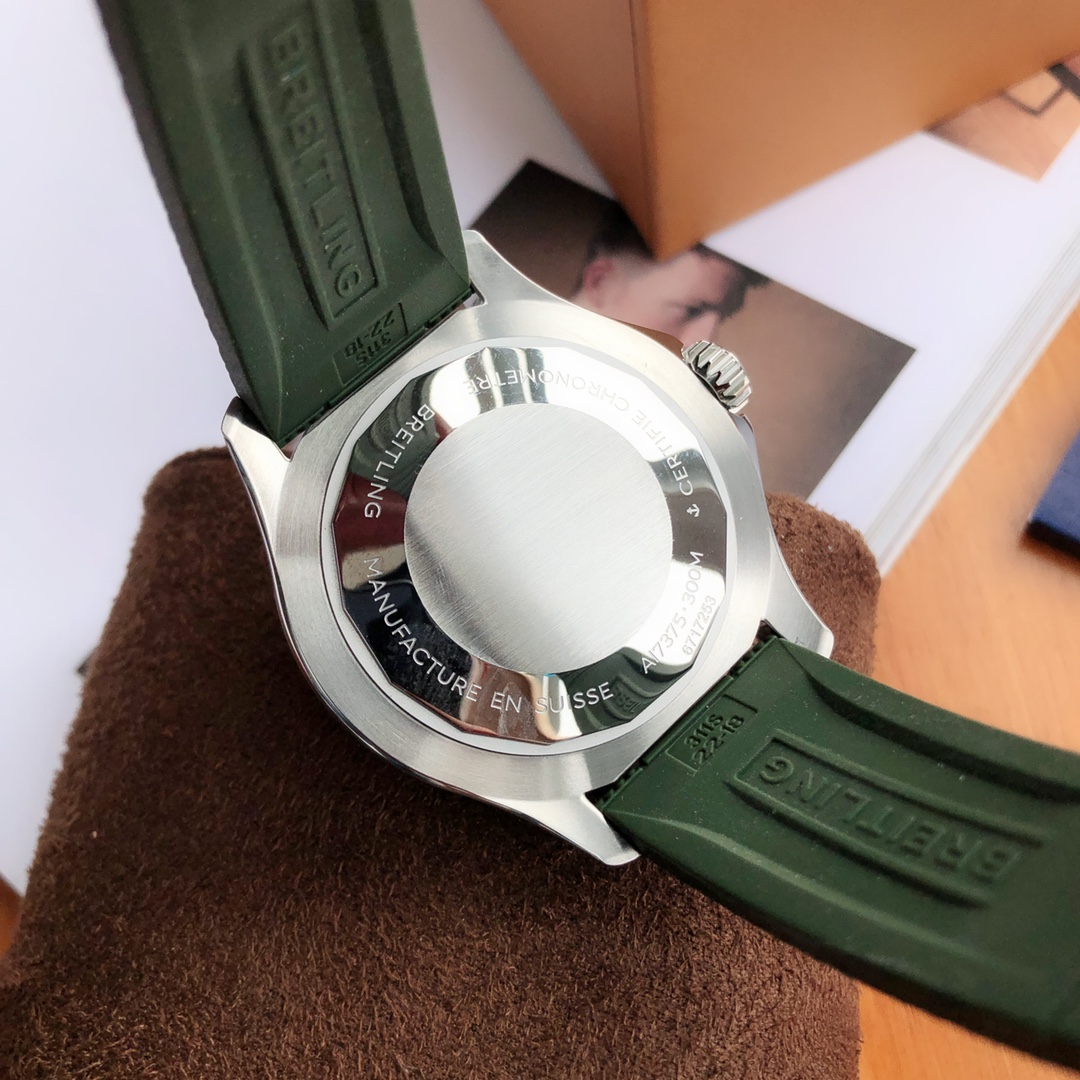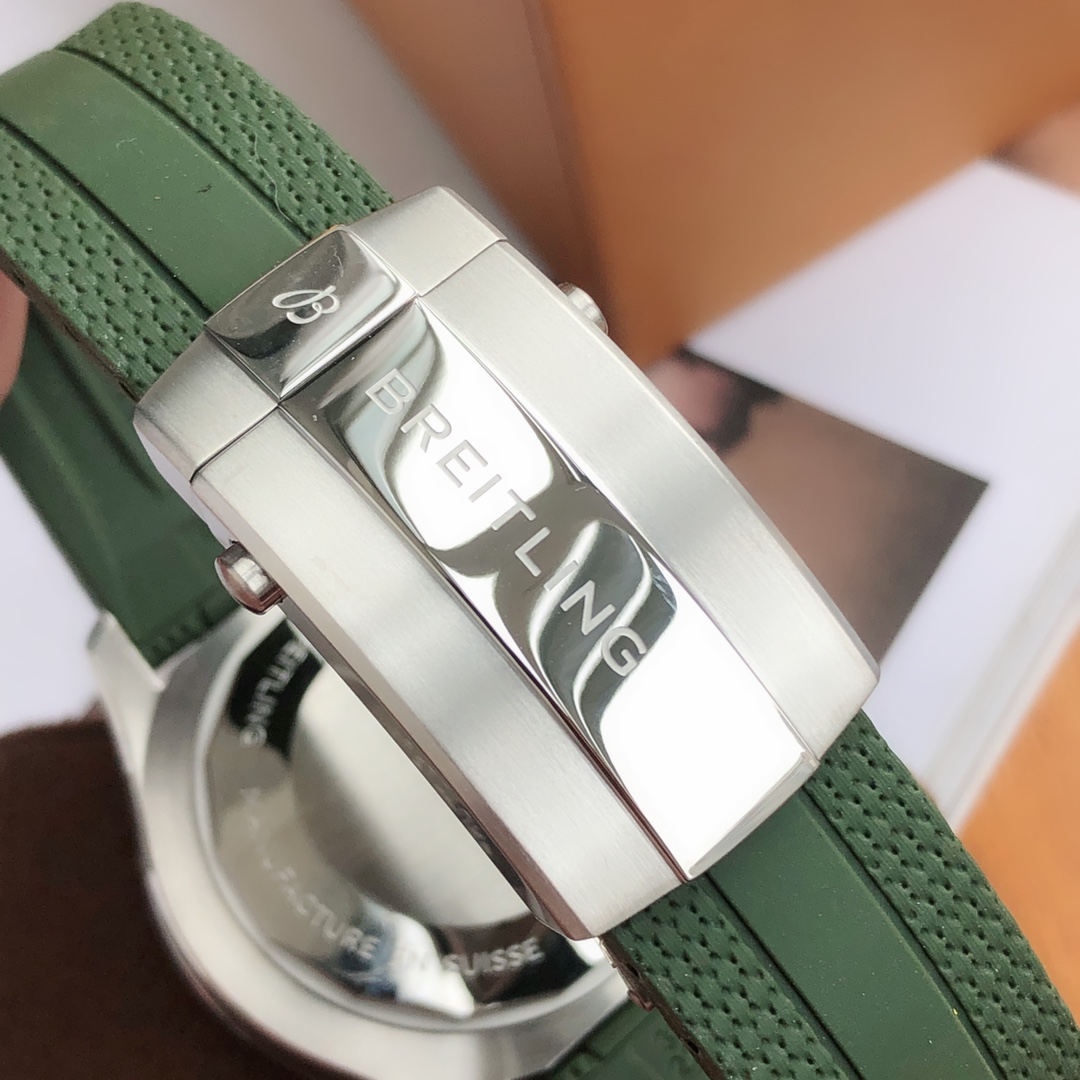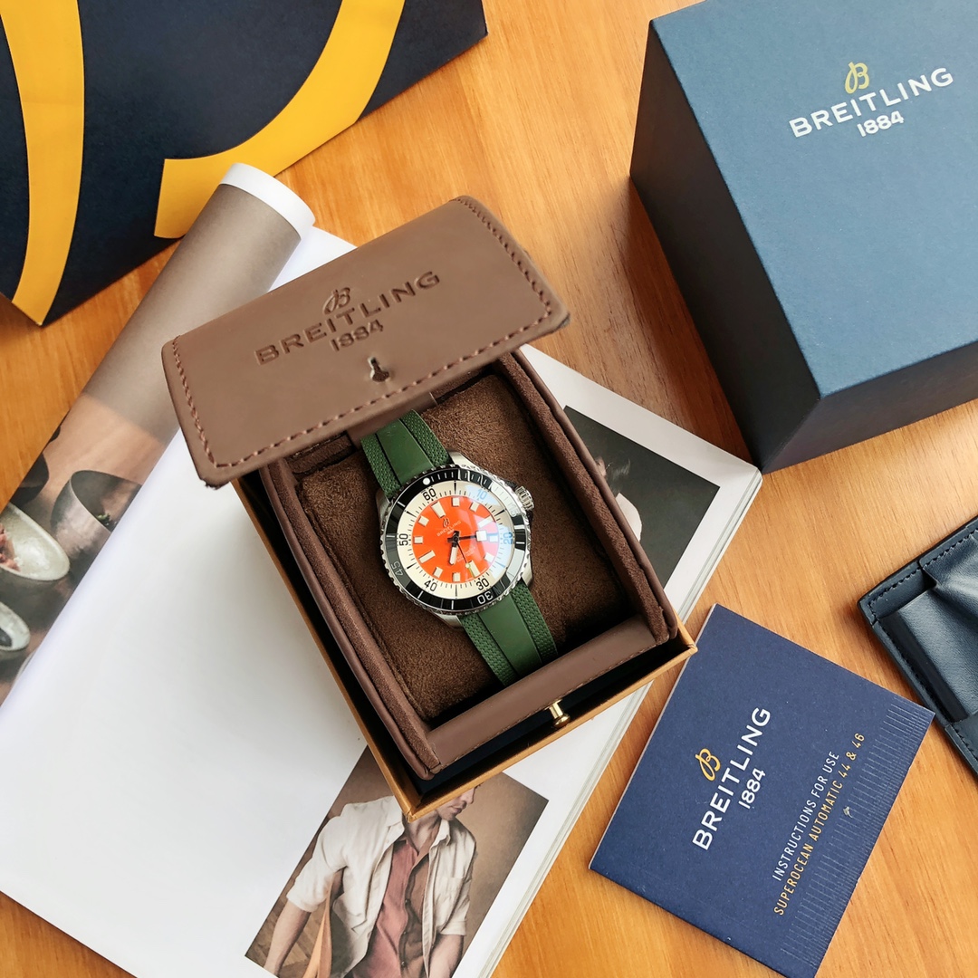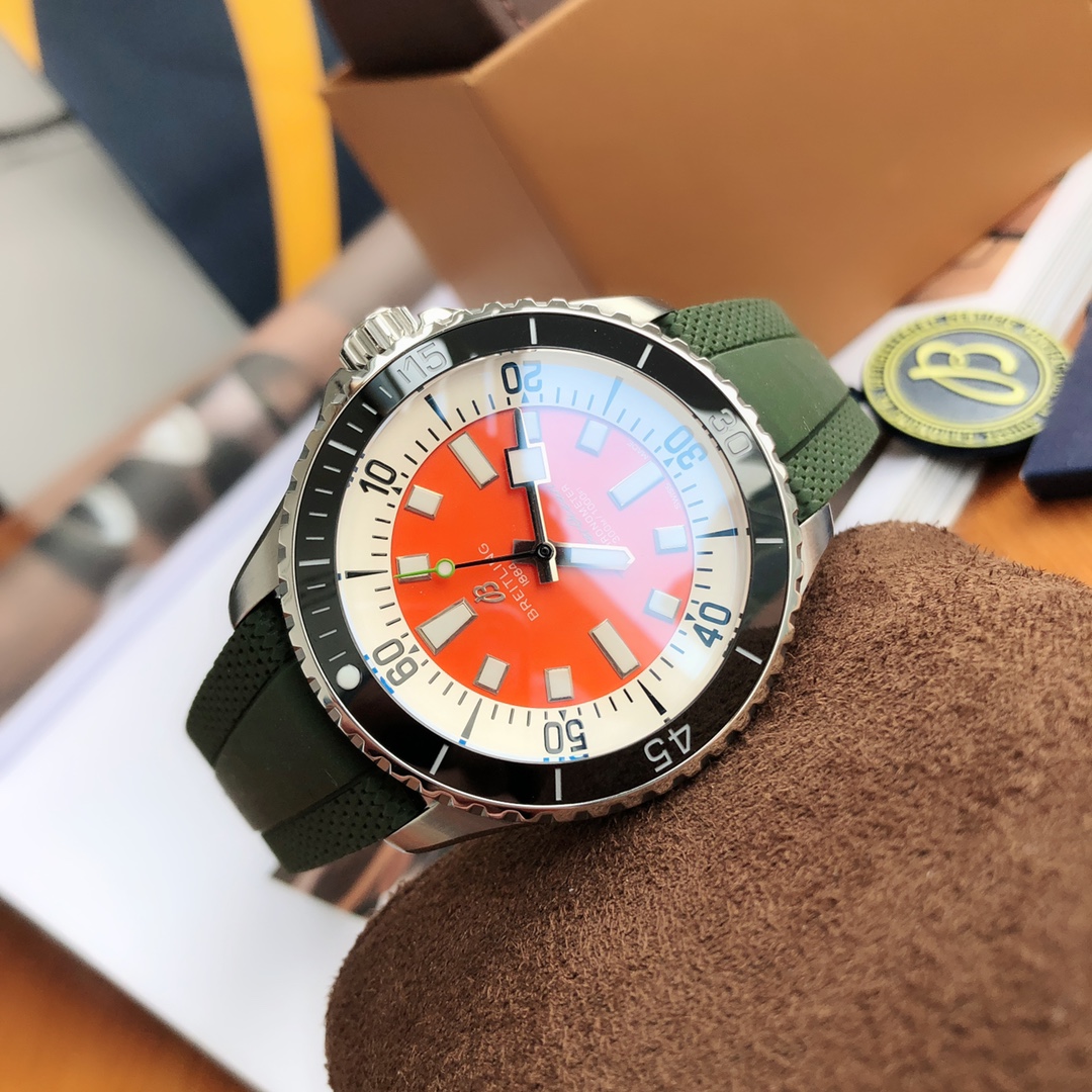 Breitling Superocean 44mm Automatic Diver Watch – Orange Dial, Green Rubber Strap