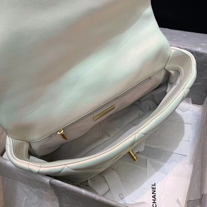 Chanel Add to Cart CHANEL 19 White Large Flap Bag MSRP: Was: Now: $161,362.45 Calfskin, Gold-Tone, Silver-Tone & Ruthenium-Finish Metal