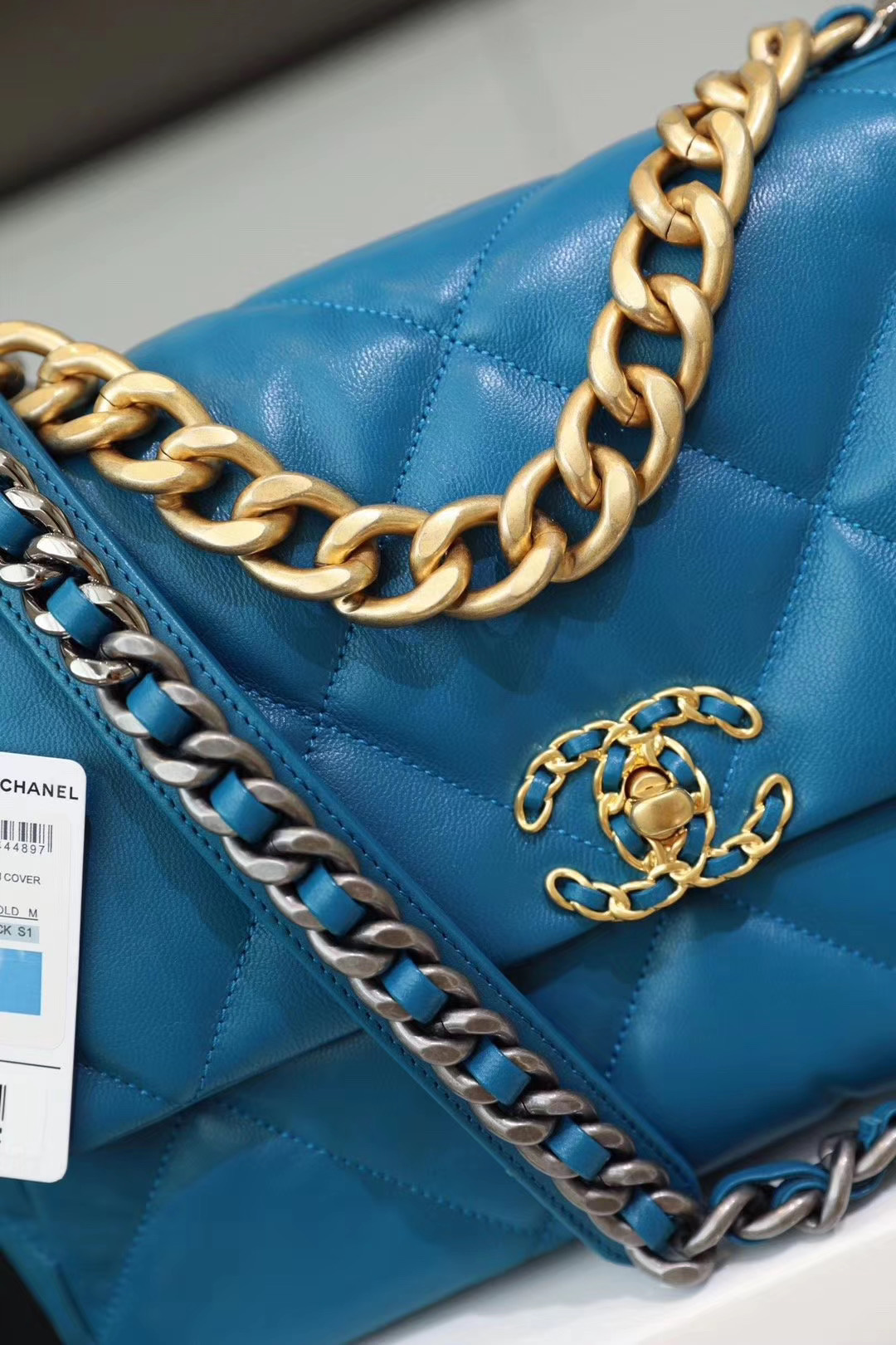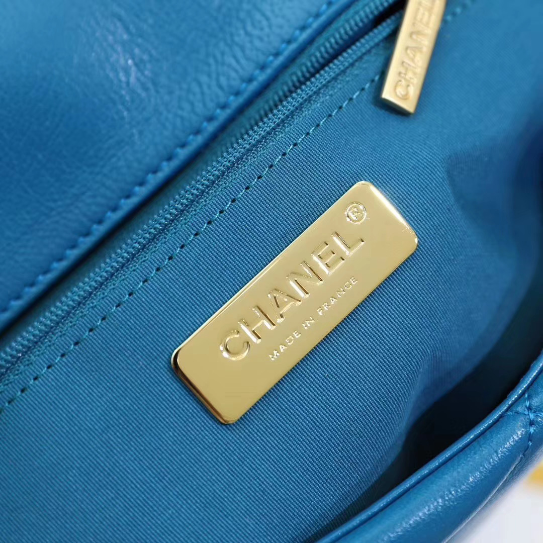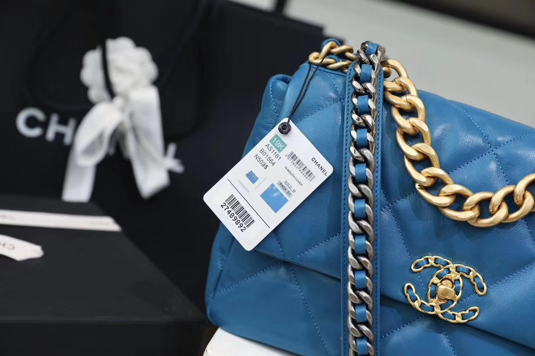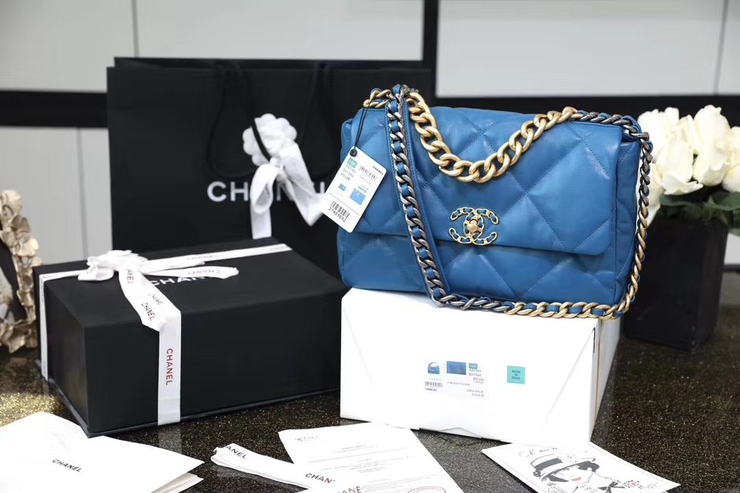 Chanel Add to Cart CHANEL 19 Flap Bag Blue MSRP: Was: Now: £3.100,00 Lambskin, Gold-Tone, Silver-Tone & Ruthenium-Finish Metal