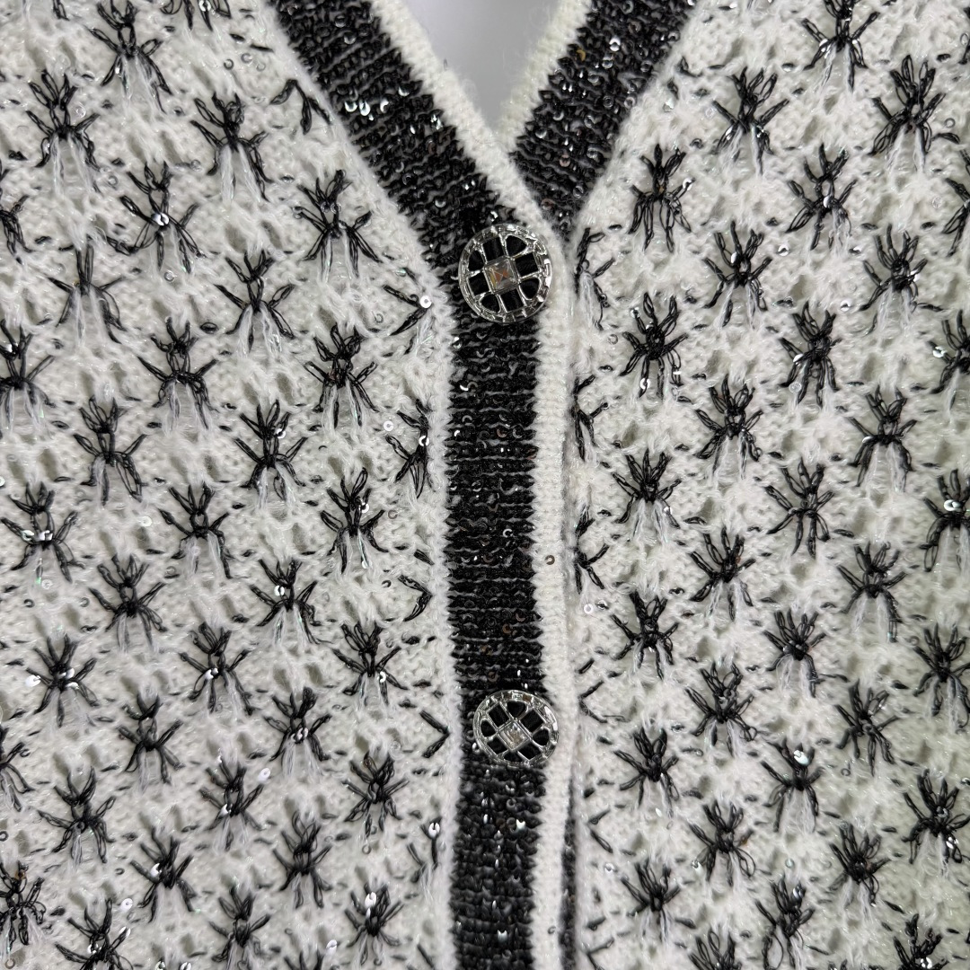 Chanel 26 Spring/Summer Knit Cardigan – Black and White Geometric Jacquard, V-Neck, Wool Blend