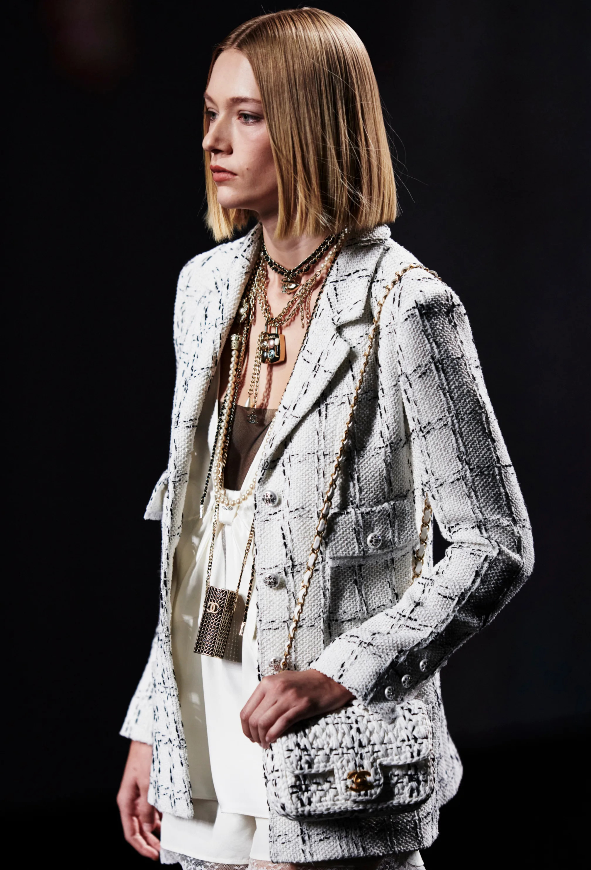 Chanel Add to Cart Chanel White Cotton Tweed Jacket MSRP: $348,413.52 Was: Now: $243,038.69 Cotton Tweed White, Black & Silver