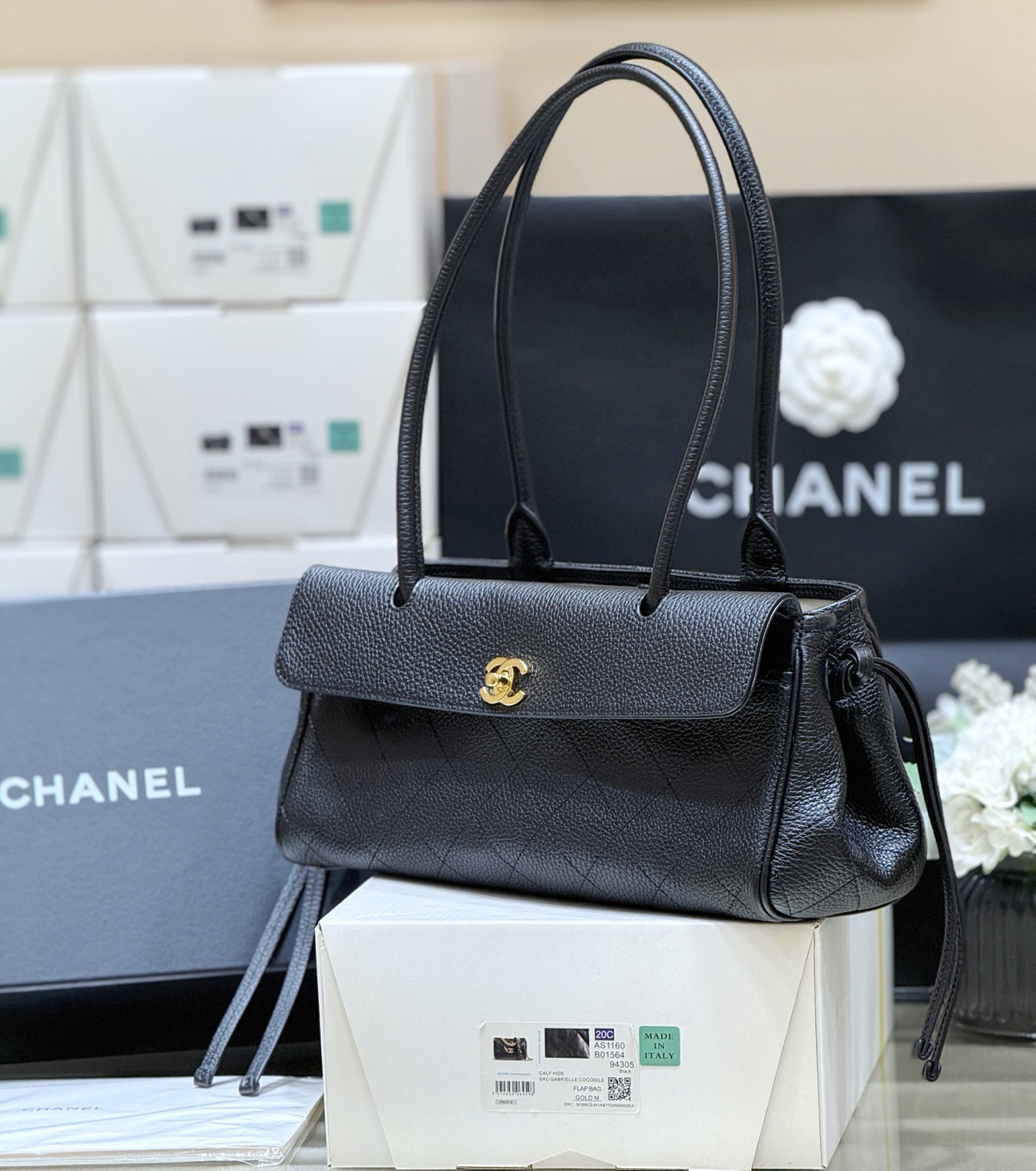 Chanel Small Shopping Bag Grained Calfskin & Gold-Tone Metal Black
