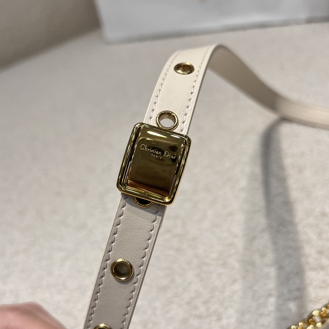 Measuring 21 × 12 × 6 cm, the bag's sleek East-West silhouette is carried upon a refined leather and chain strap, draping gracefully across the shoulder. This is artisanal heritage rendered in wearable form.