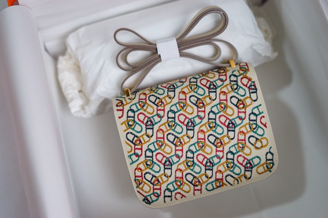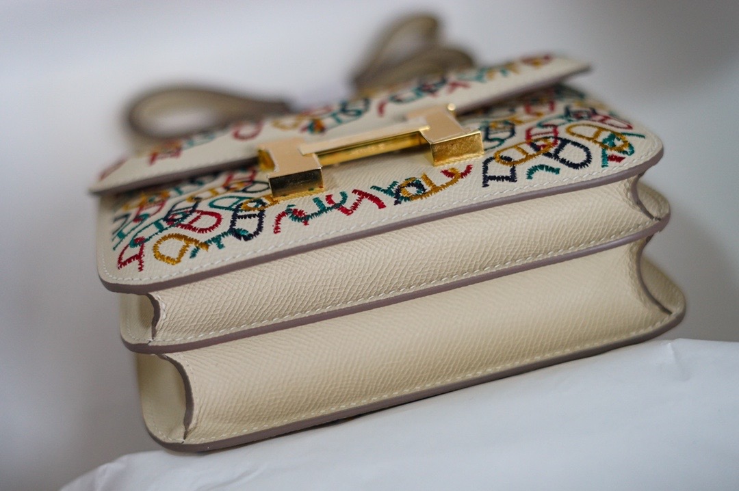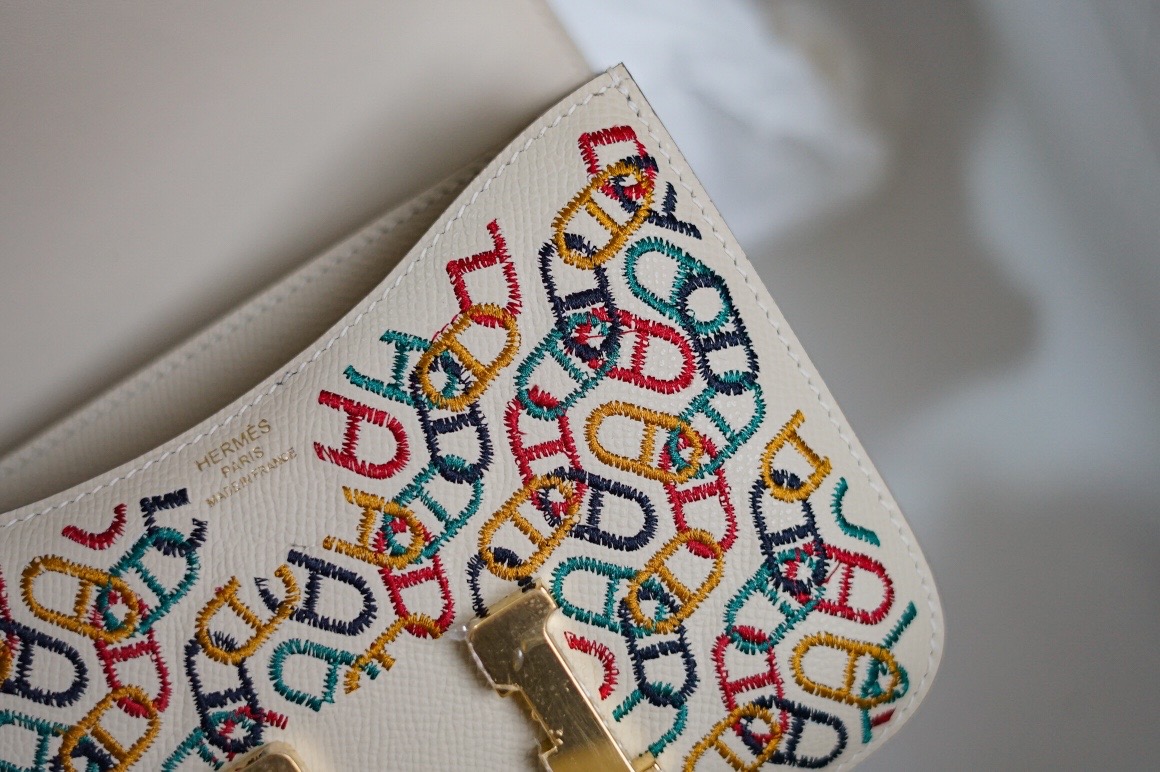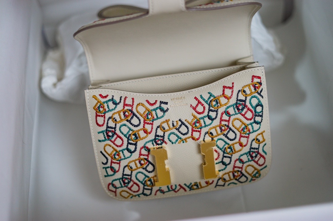 Hermes 2021 Limited Edition Embroidered Constance 18 Epsom Leather Gold Hardware