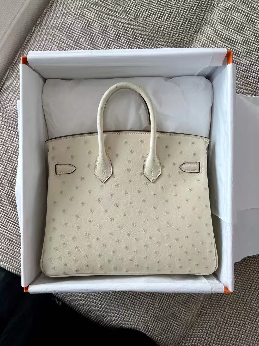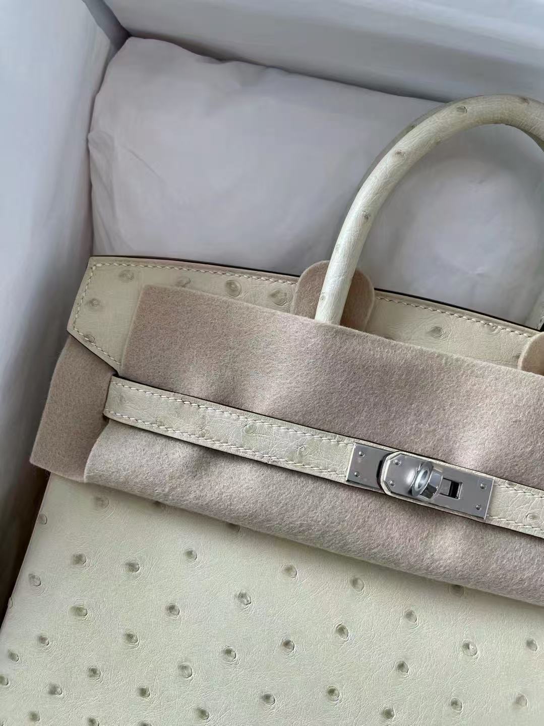 Hermes 3C Wool White Birkin Bag 25cm KK Ostrich Leather Palladium Hardware