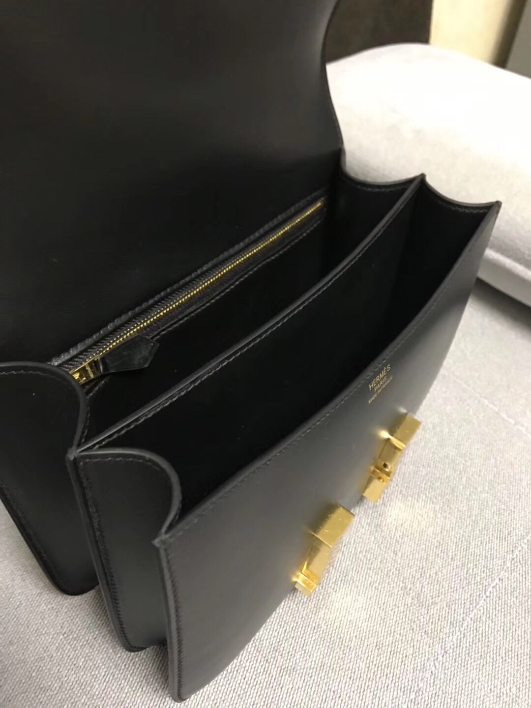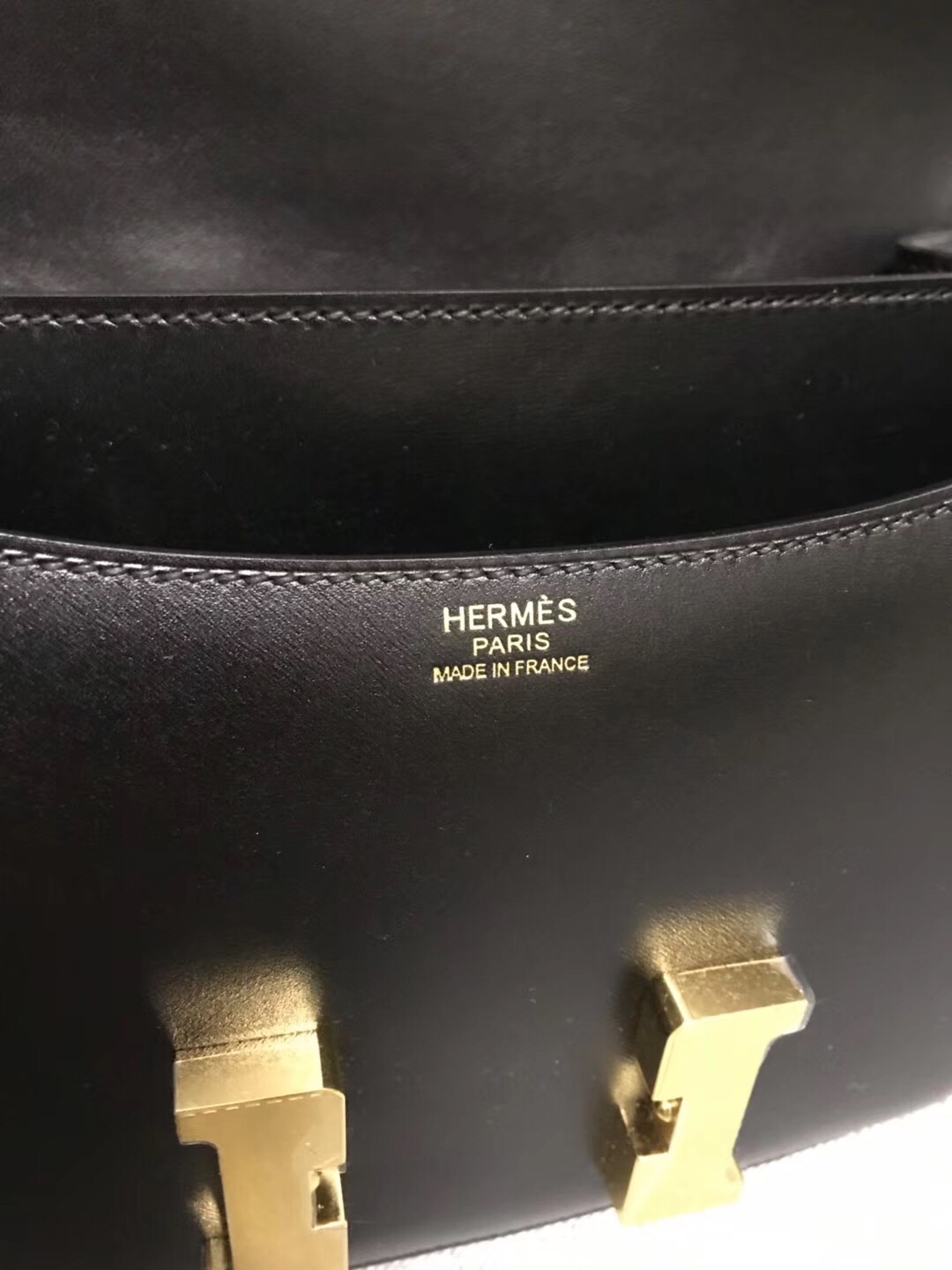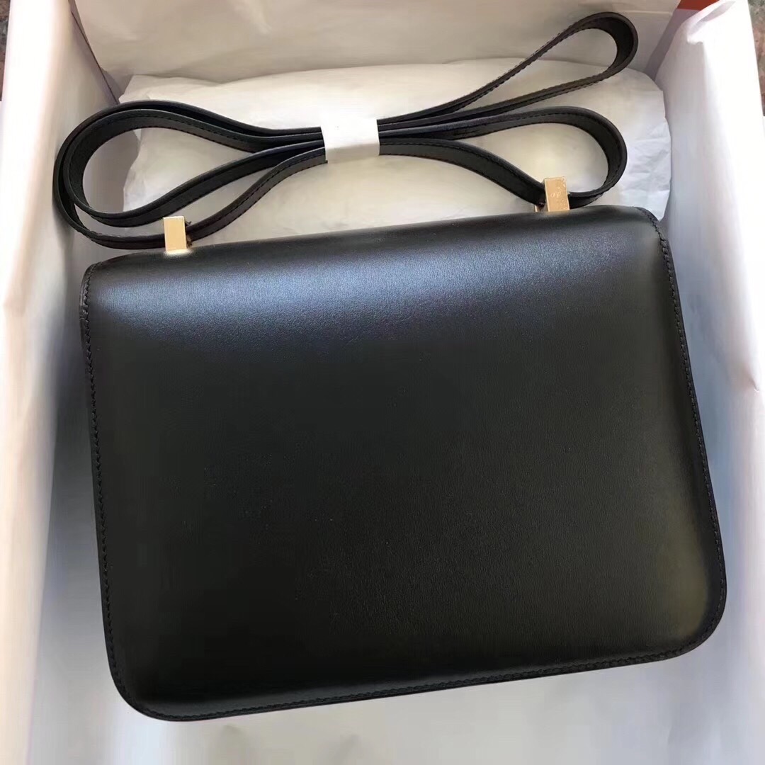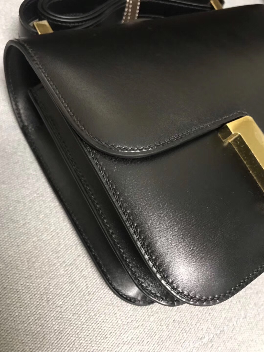 Hermès Black Constance 23cm of box leather with gold hardware.