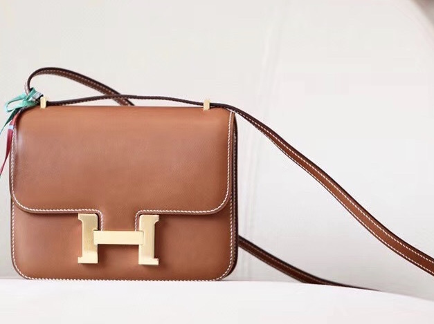 Hermes 18 Constance featured in coveted and rare Barenia leather. Accentuated with gold hardware and bone top stitch.