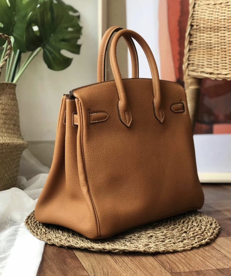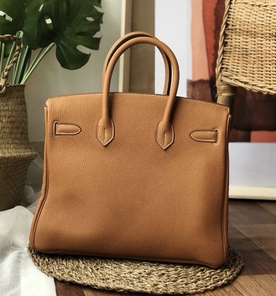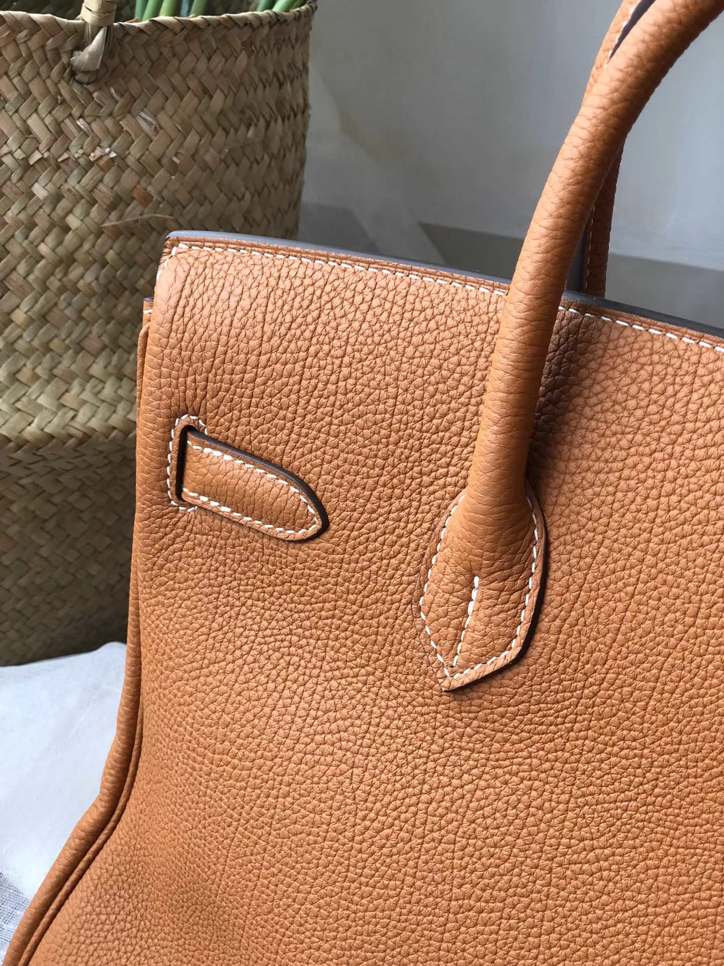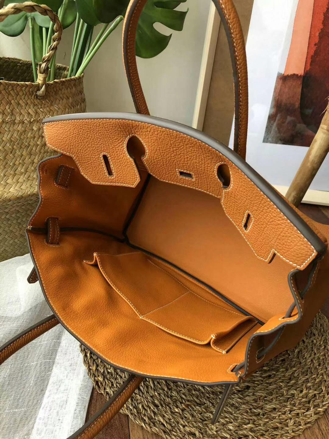 This spacious tote is crafted of fine togo calfskin leather with expansive sides and a durable reinforced base. The bag features rolled leather top handles and a cross over flap with a gold tipped straps and turn lock closure with a padlock and leather covered key cles. This opens to a matte chevre goatskin leather interior. This is a chic travel companion, with the superb craftsmanship and appeal only from Hermes!