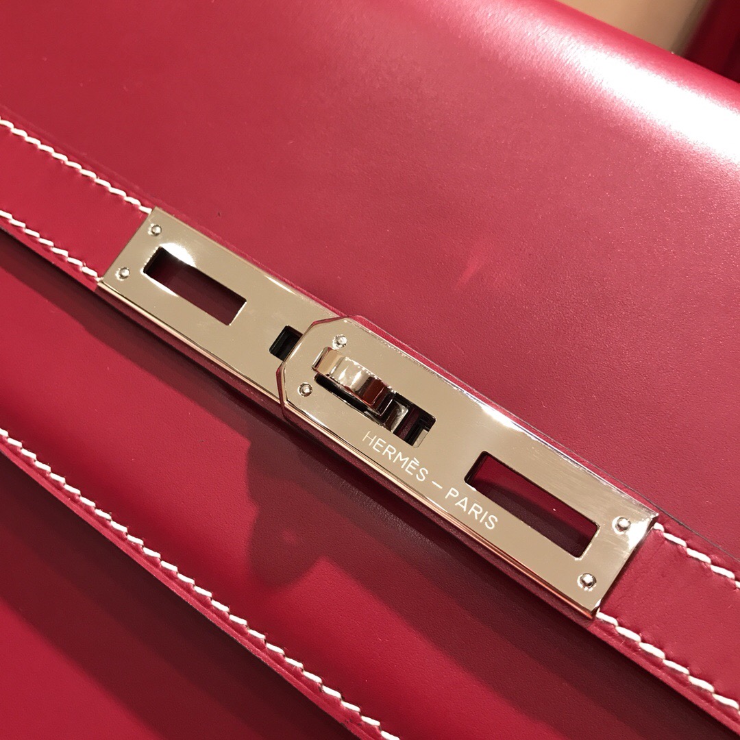 Hermes Kelly Depeche 38 Briefcase in Bordeaux Box Leather with Palladium Hardware