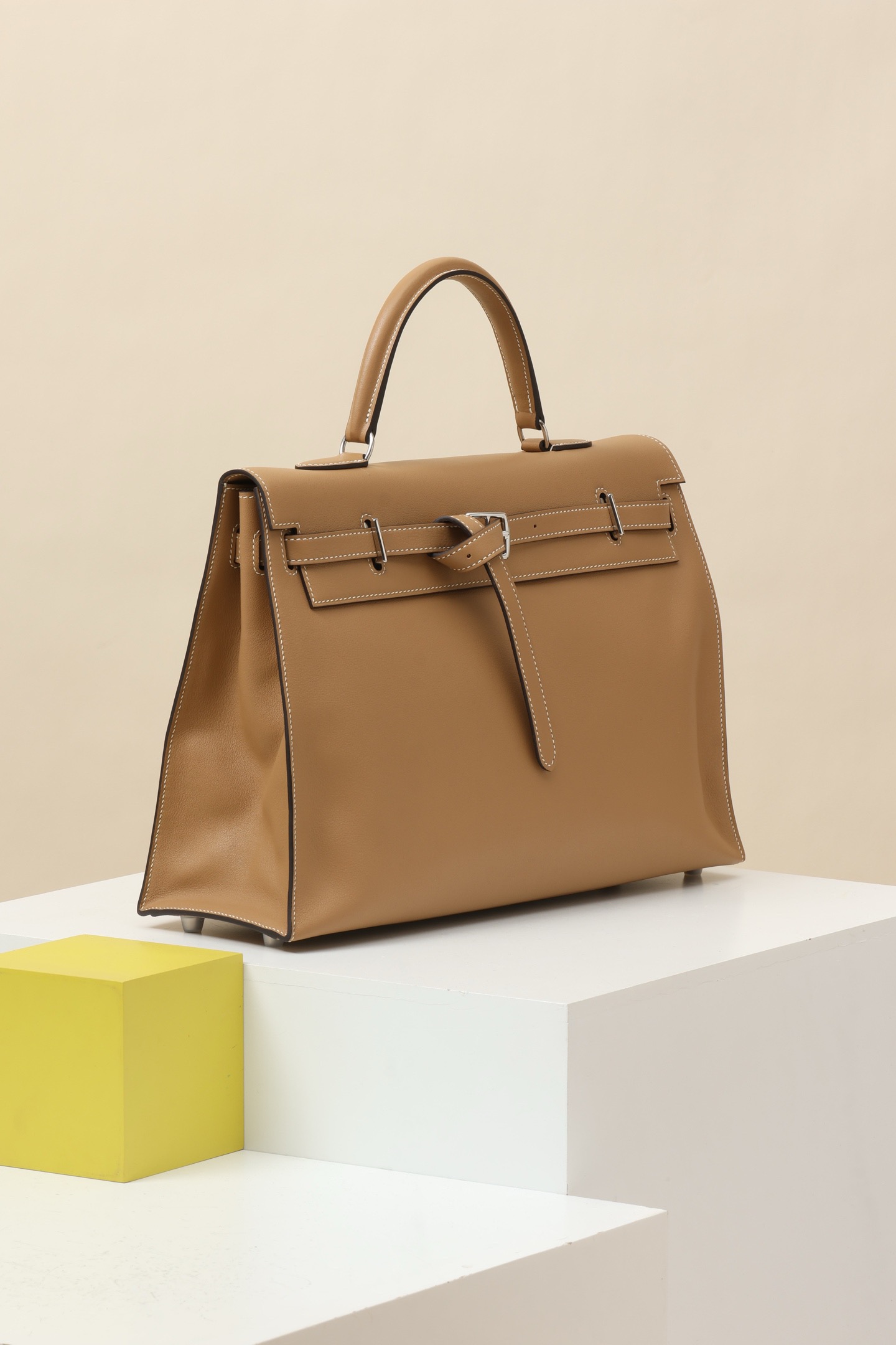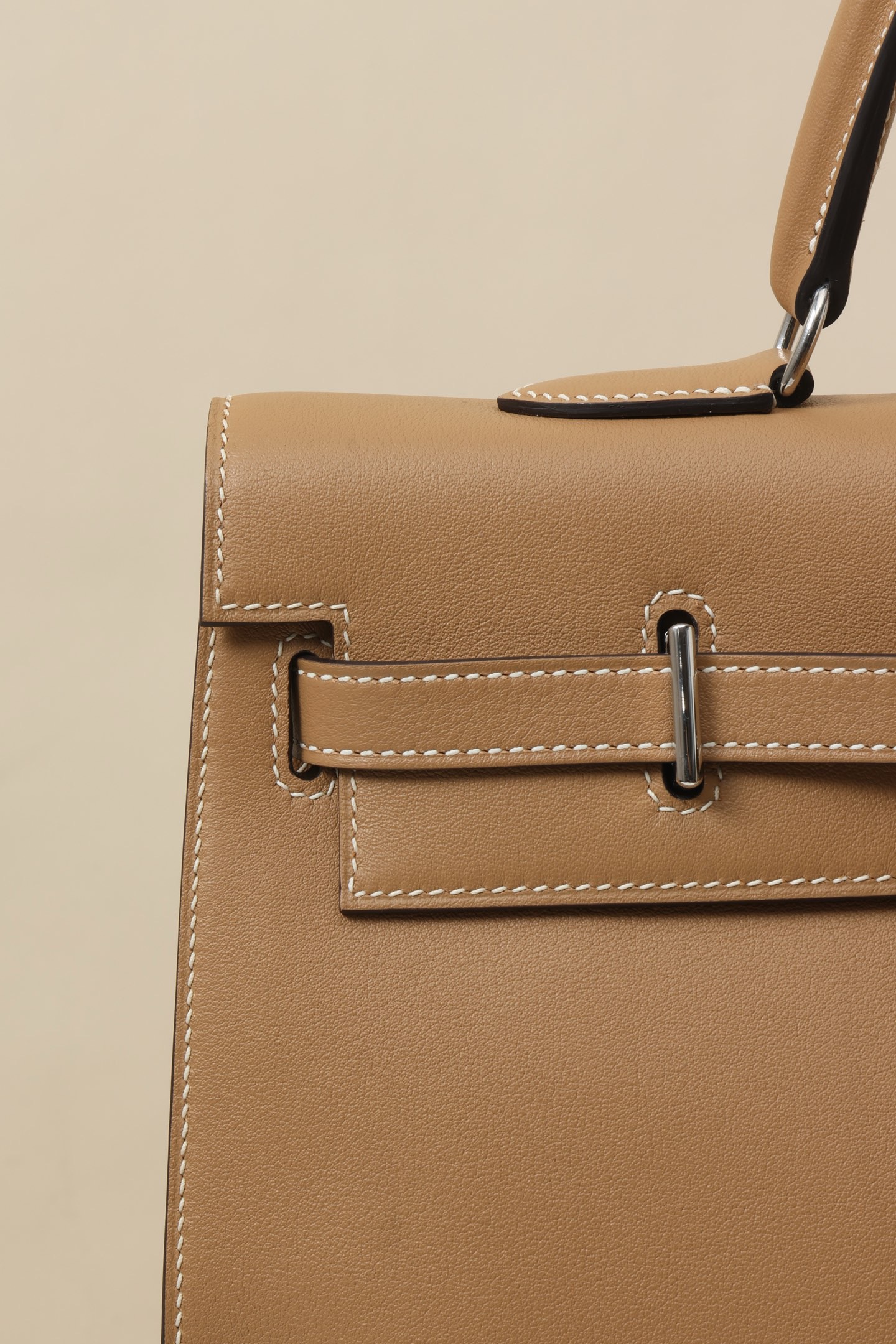 Hermès Kelly Flat 35 Handbag Palladium Hardware Chai