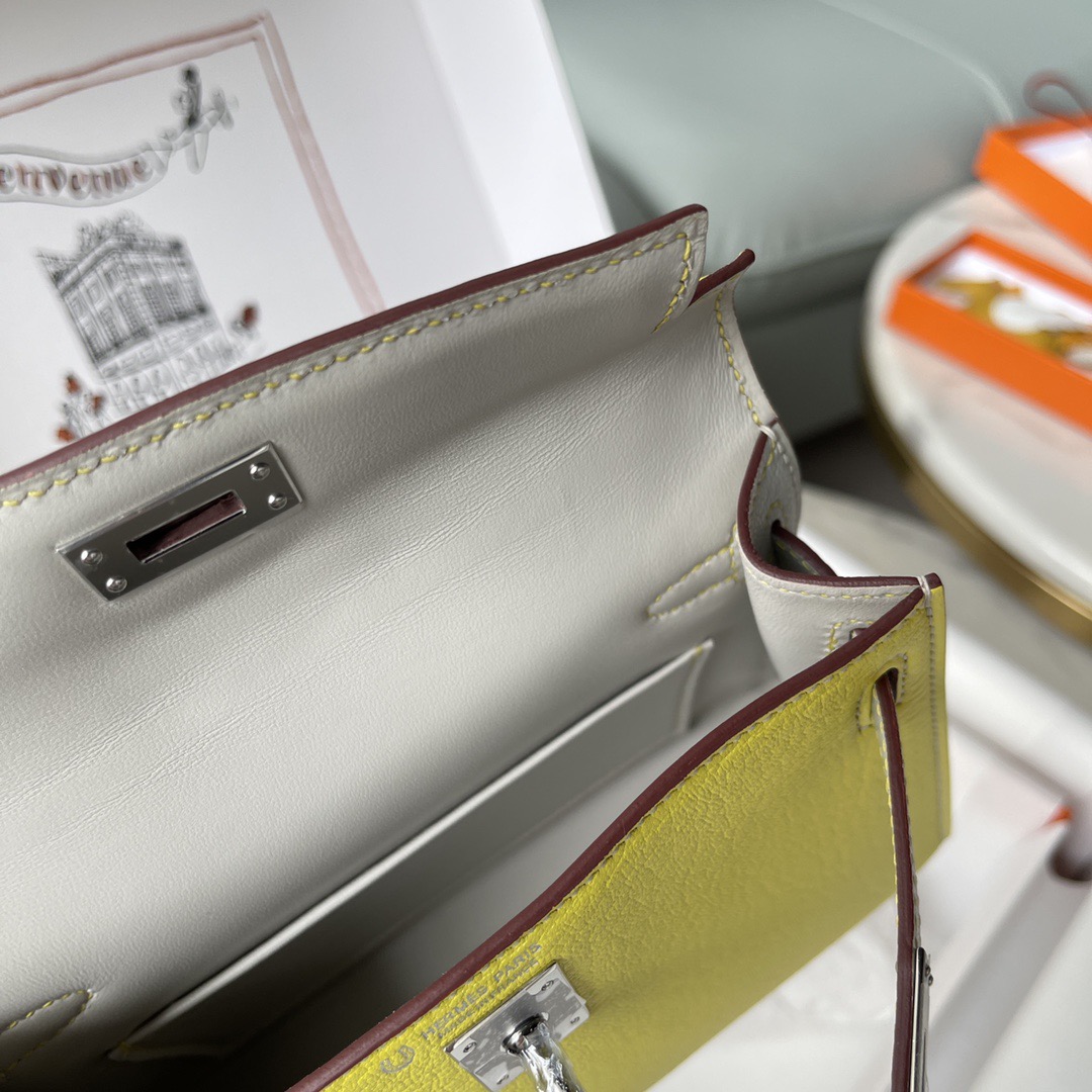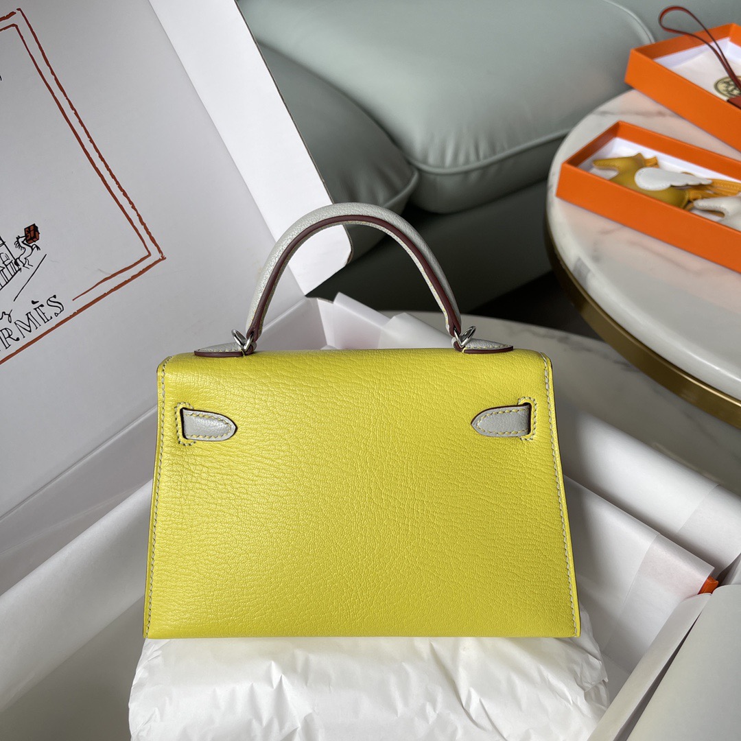Hermès Mini Kelly II Sellier Bag in Yellow and Gris Perle Chevre Leather