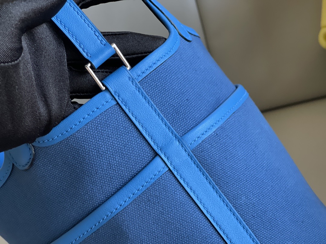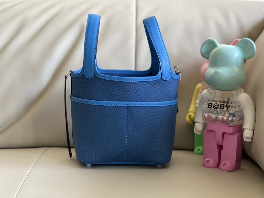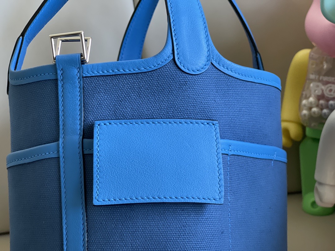 Hermès Picotin Cargo 18 Blue Frida Swift and Toile Canvas Palladium Hardware