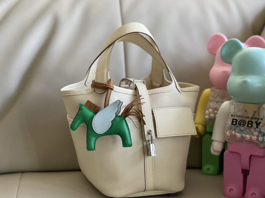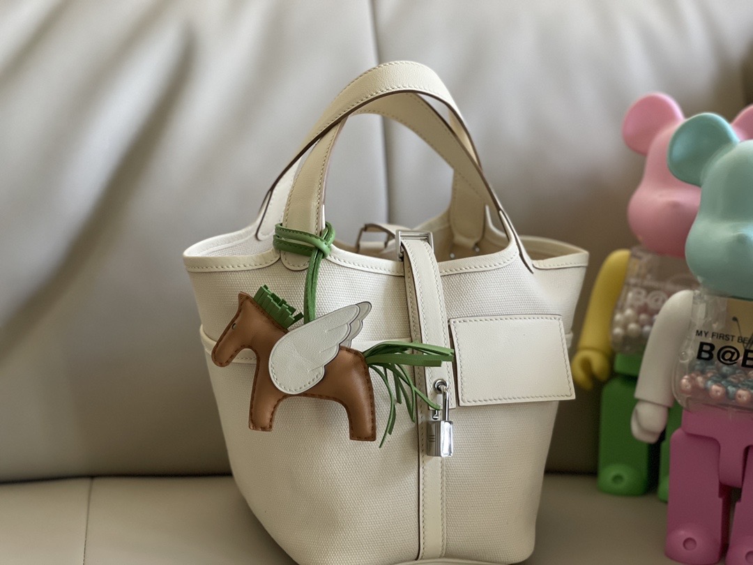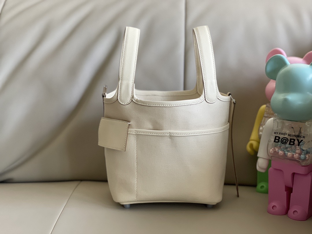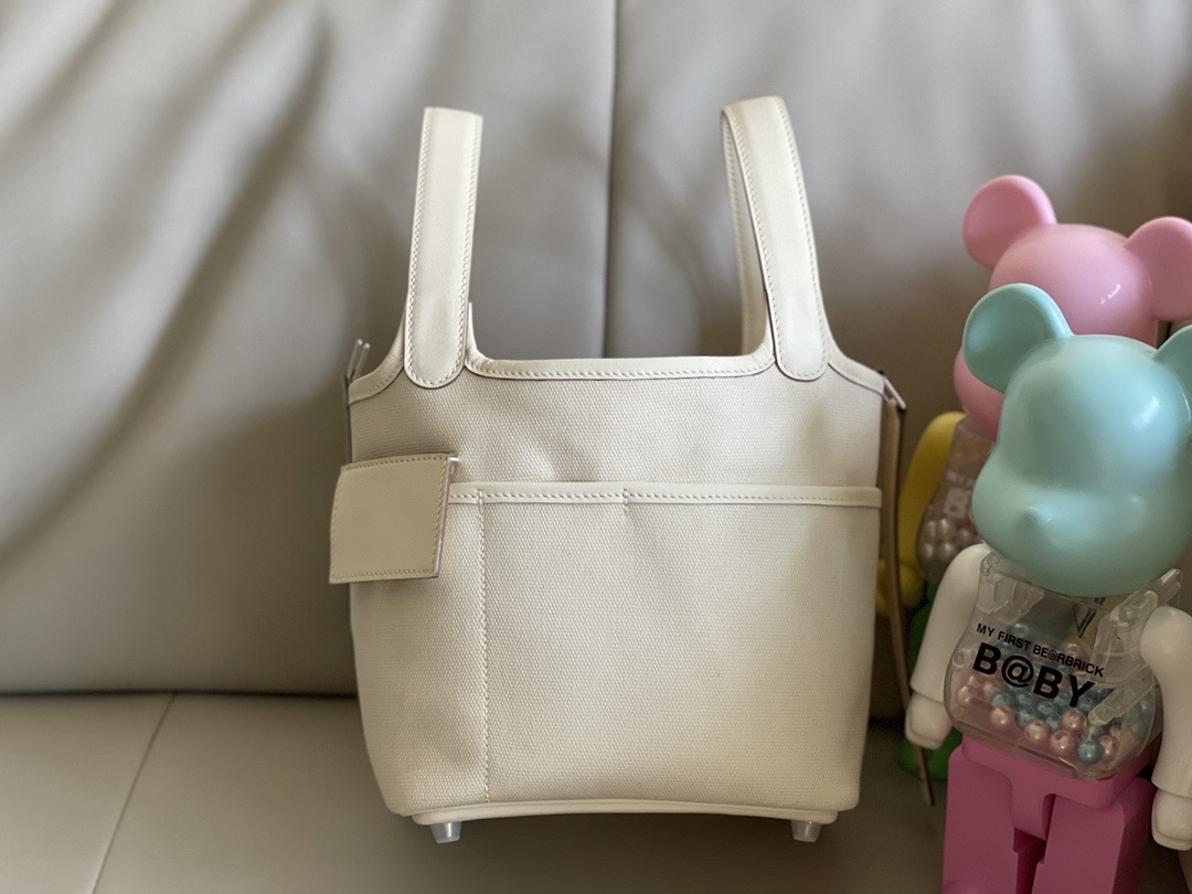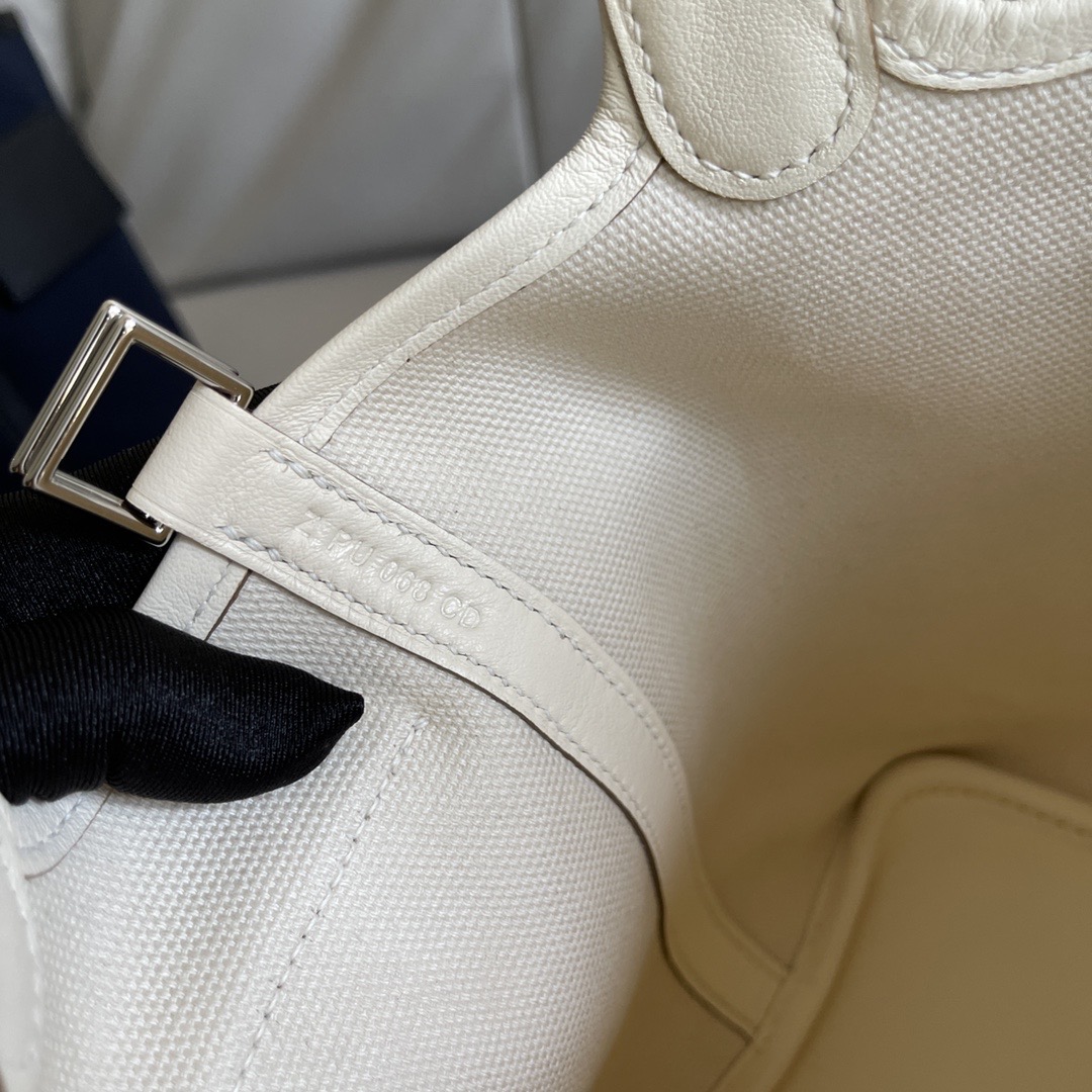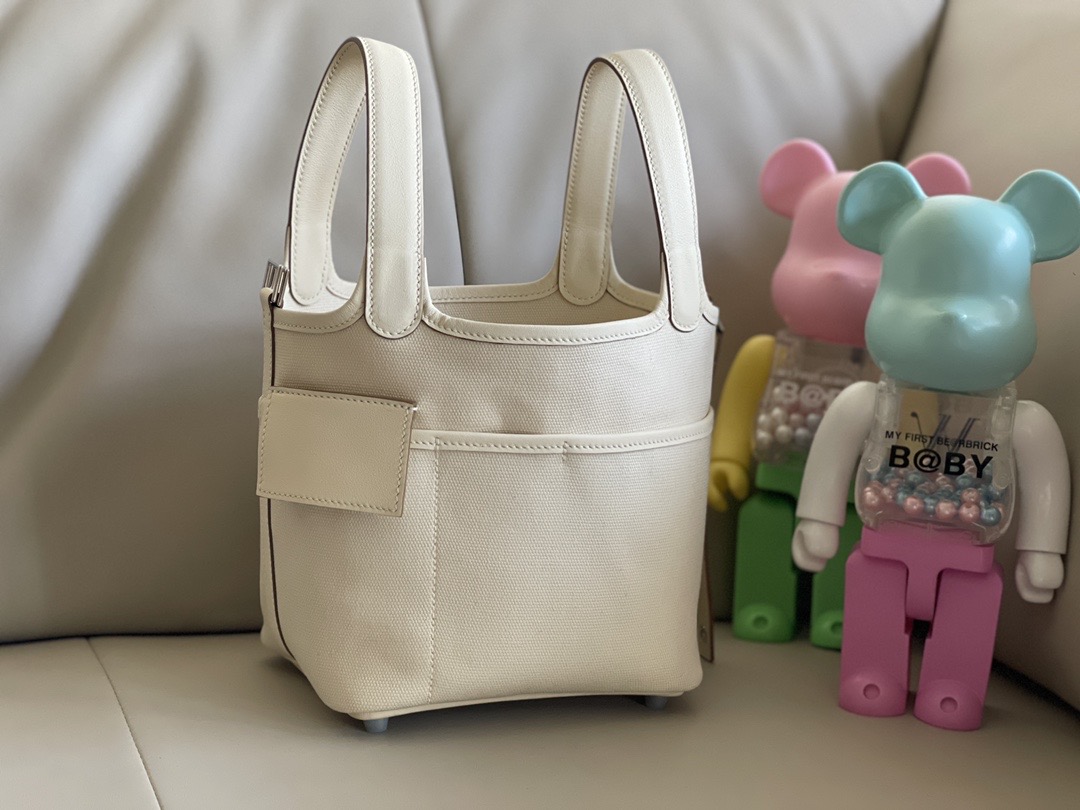 Hermès Picotin Cargo 18 Cream Swift and Toile Canvas Palladium Hardware