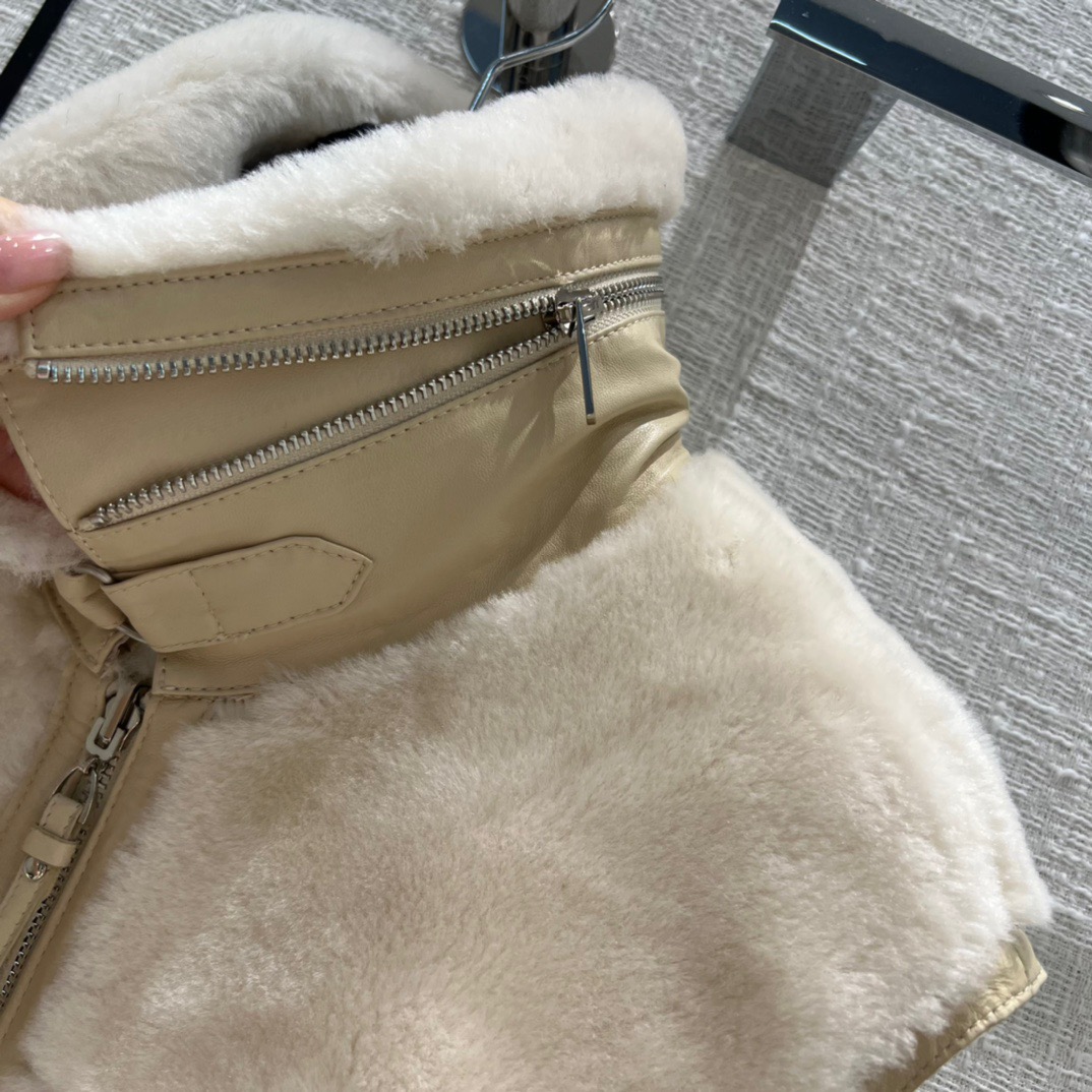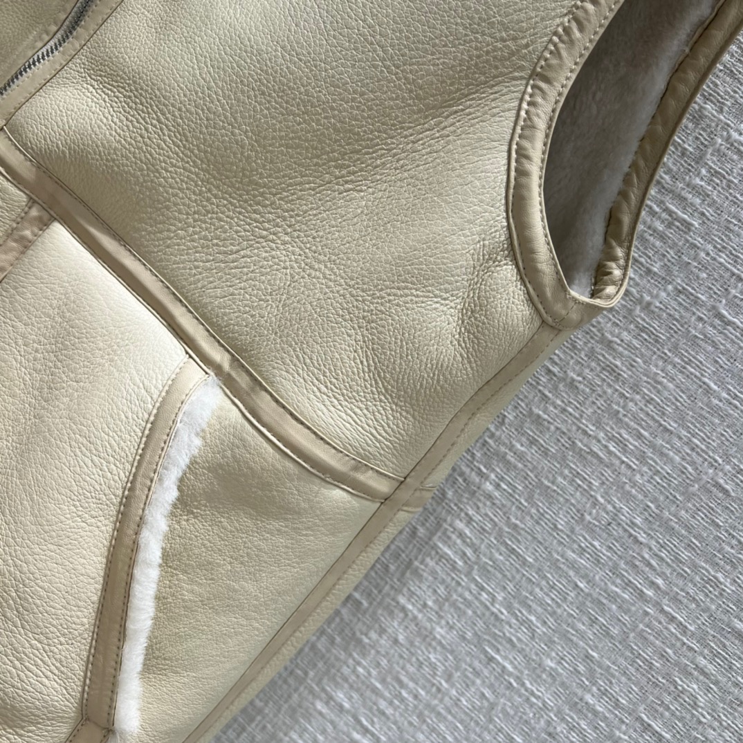 - Middle front fastening with palladium-plated zip and signature pull-tab in lambskin
