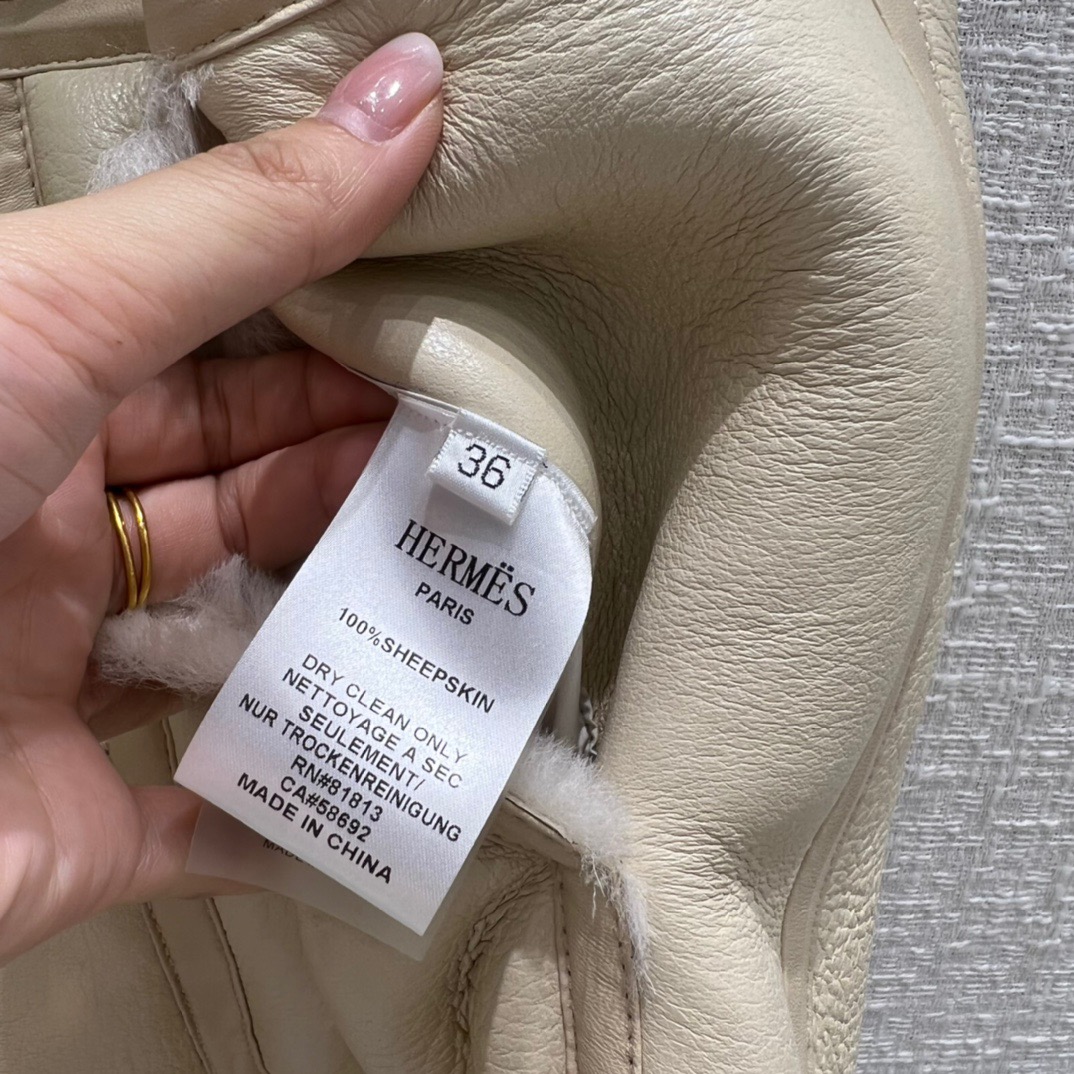 - Bomber mock neck collar in lambskin with strap, palladium-plated D buckle, Clou de Selle engraved palladium-plated snap closure and removable collar in sheepskin with palladium-plated zip