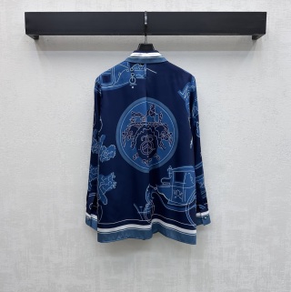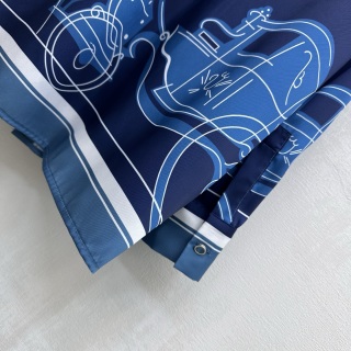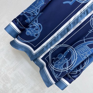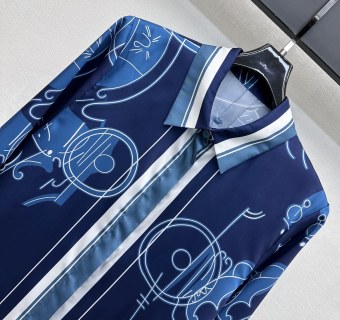 This is a new arrival from Hermes, featuring a striking artistic line print on rich blue silk. The shirt is made from 100% mulberry silk, which feels comfortable, drapes beautifully, and is breathable for all-day wear. The design uses high-quality custom imported silk, and the unique print instantly enriches the visual effect while highlighting the refined brand style.