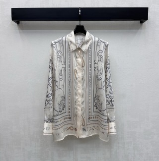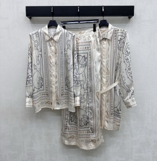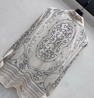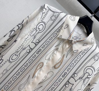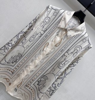 This Hermès long sleeve shirt is crafted from 100% mulberry silk, offering a smooth, airy, and comfortable feel. The shirt features an all-over abstract line print in soft, neutral tones that gives it a refined sense of artistry and visual depth.