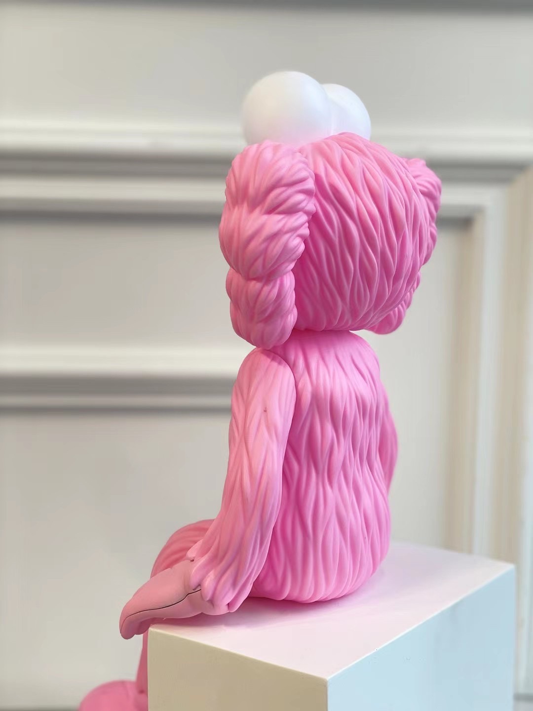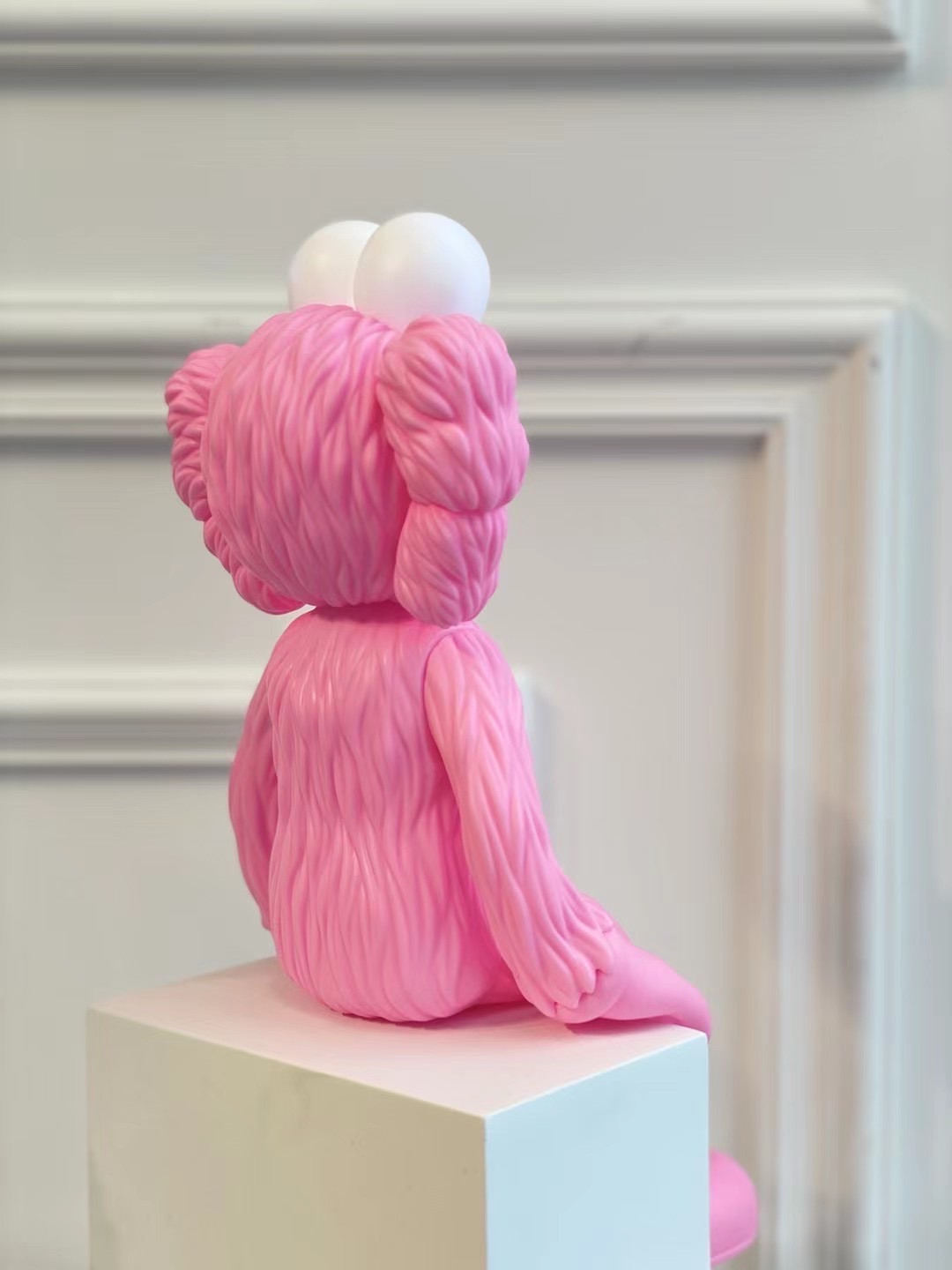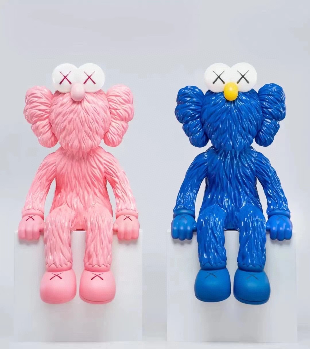 KAWS is a multi-faceted artist straddling the worlds of art and design in his prolific body of work that ranges from paintings, murals, and large-scale sculptures to product design and toy-making. His iconic “XX” signature has its roots in the beginning of his career as a street artist in the 1990s, when he began altering found advertisements by incorporating his own masterful paintings. Evoking the sensibilities of Pop artists like Andy Warhol and Claes Oldenburg, KAWS possesses a sophisticated humor and thoughtful interplay with consumer products and collaborations with global brands. He often draws inspiration and appropriates from popular culture animations to form a unique artistic vocabulary and influential cast of hybrid cartoon and human characters.