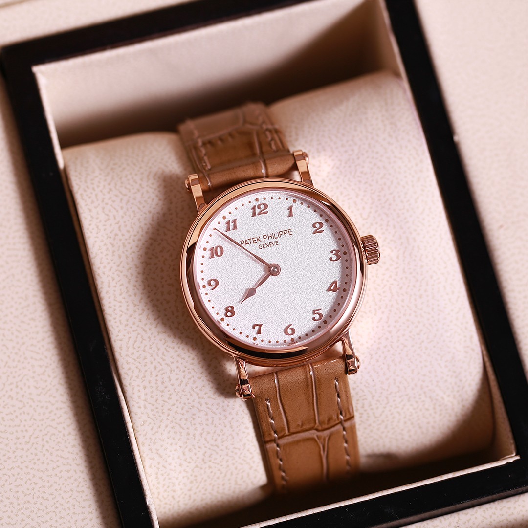 THE ARCHITECTURE: CALATRAVA PURITY The 7200R features a 34.6mm "Officier" style case in 18k Rose Gold, characterized by its rounded flanks and straight lugs with screw-set strap bars. This design is a direct nod to Patek Philippe’s early 20th-century history. With a total thickness of only 7.37mm, it disappears under a silk cuff, offering a profile that is both discreet and architecturally perfect.