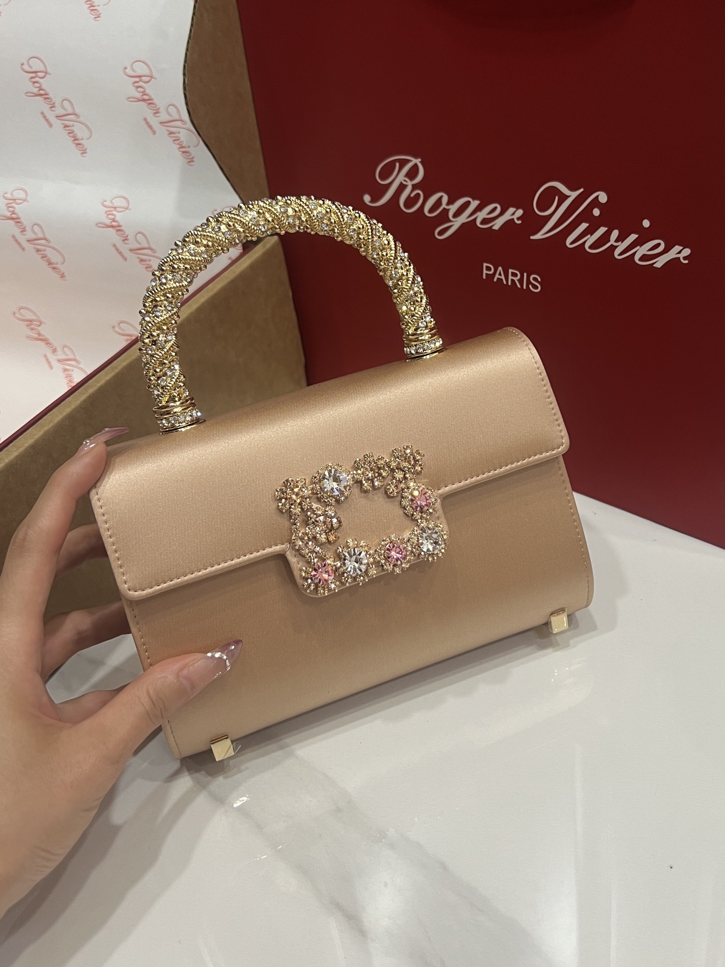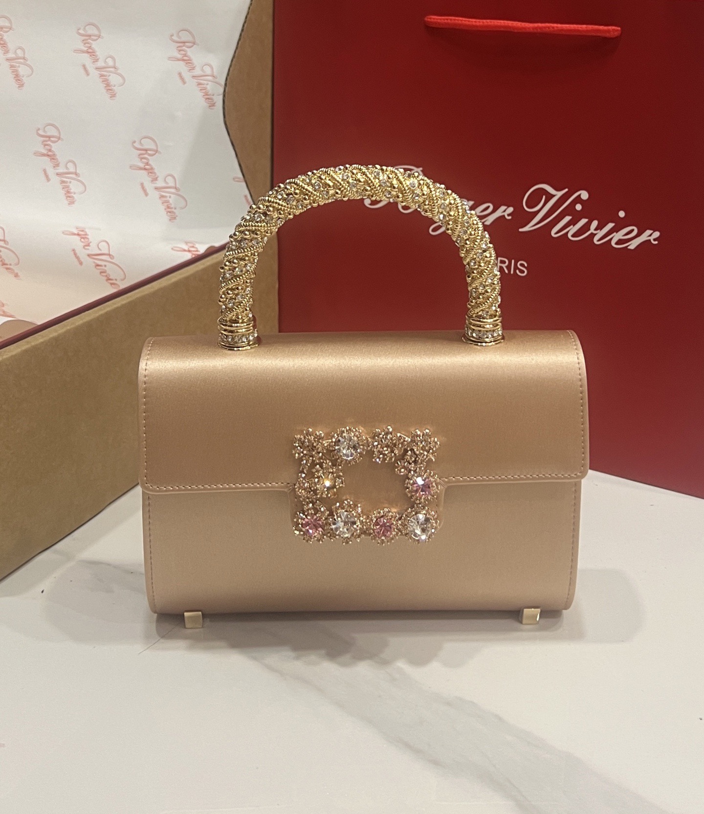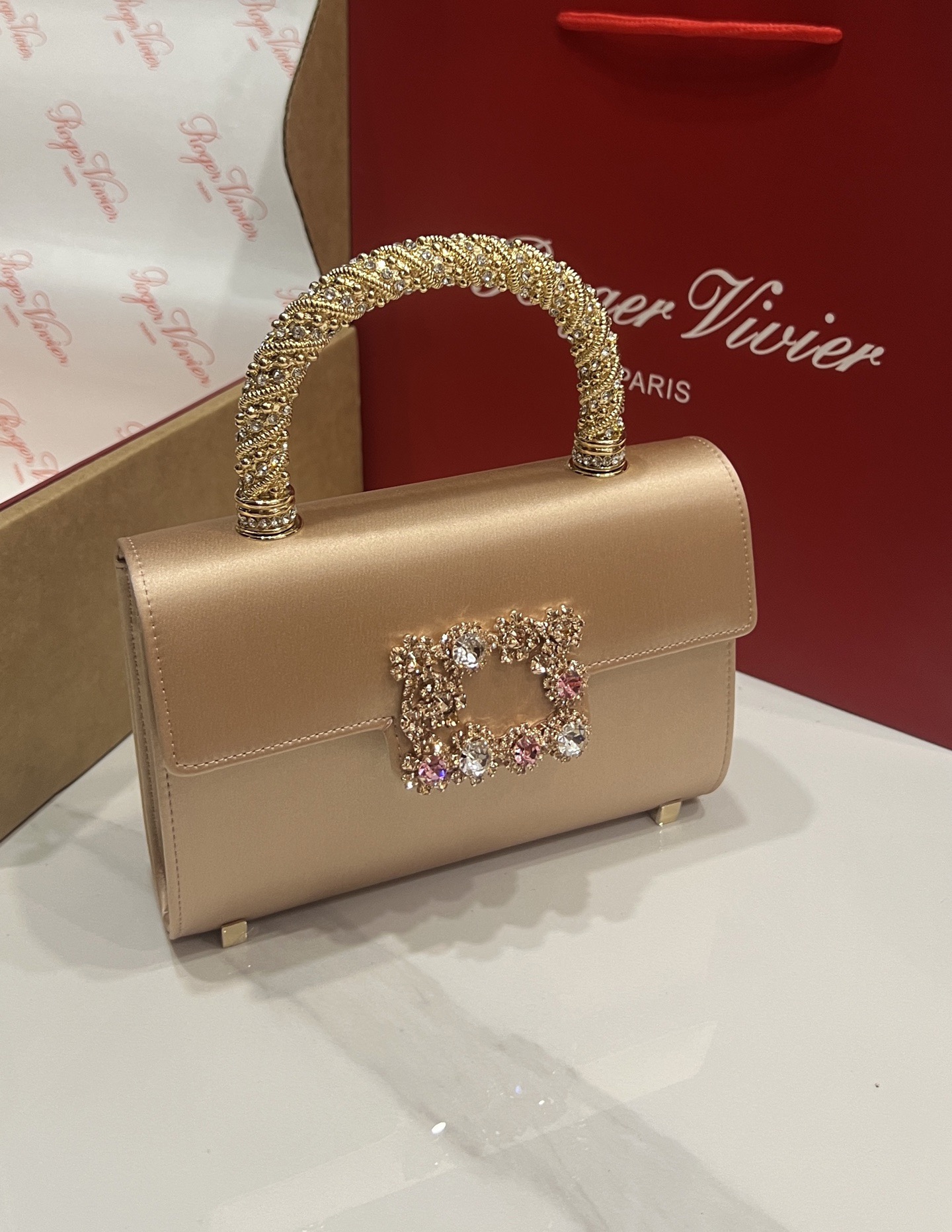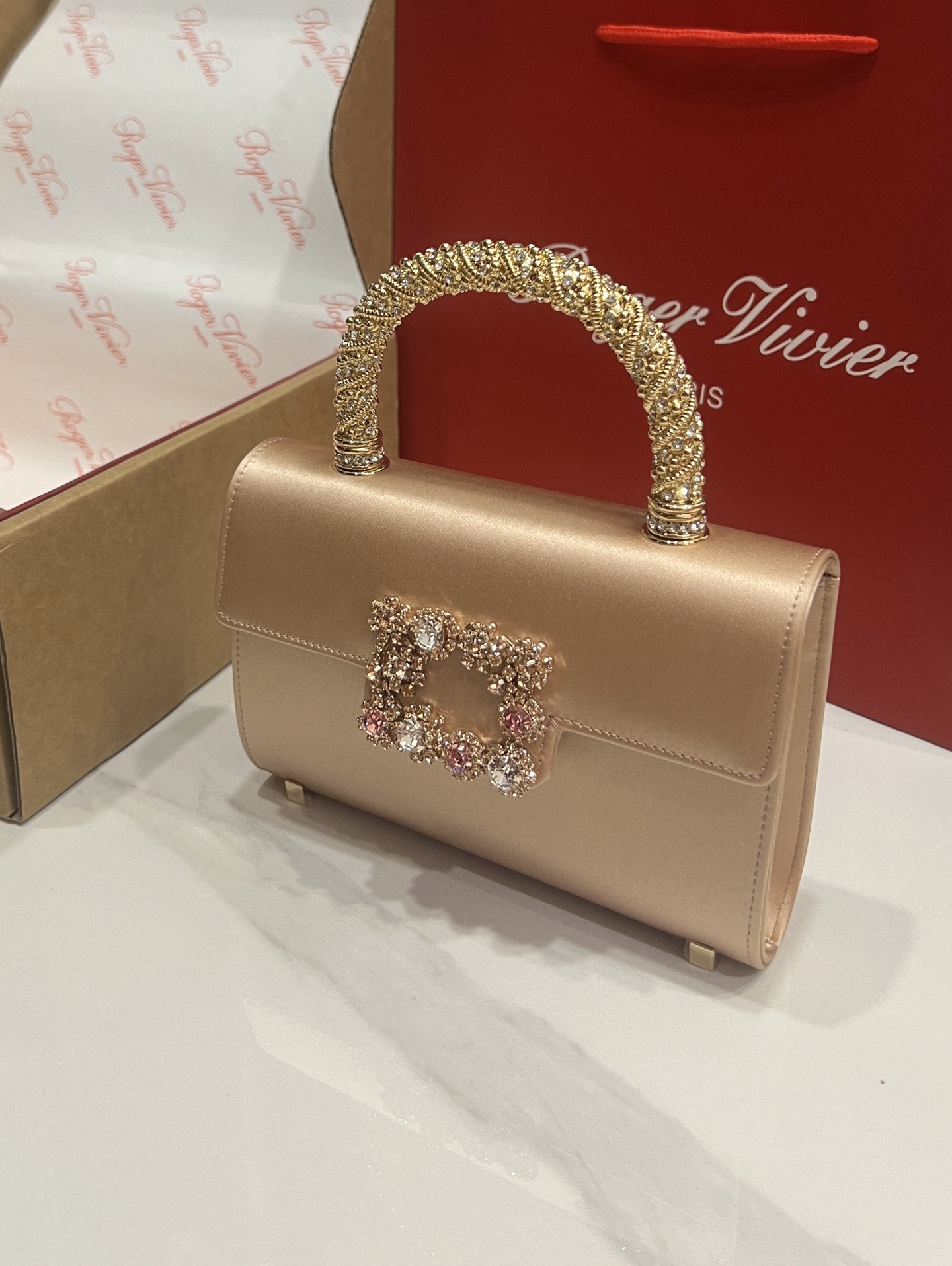 Roger Vivier Efflorescence Mini Bag in Satin Gold