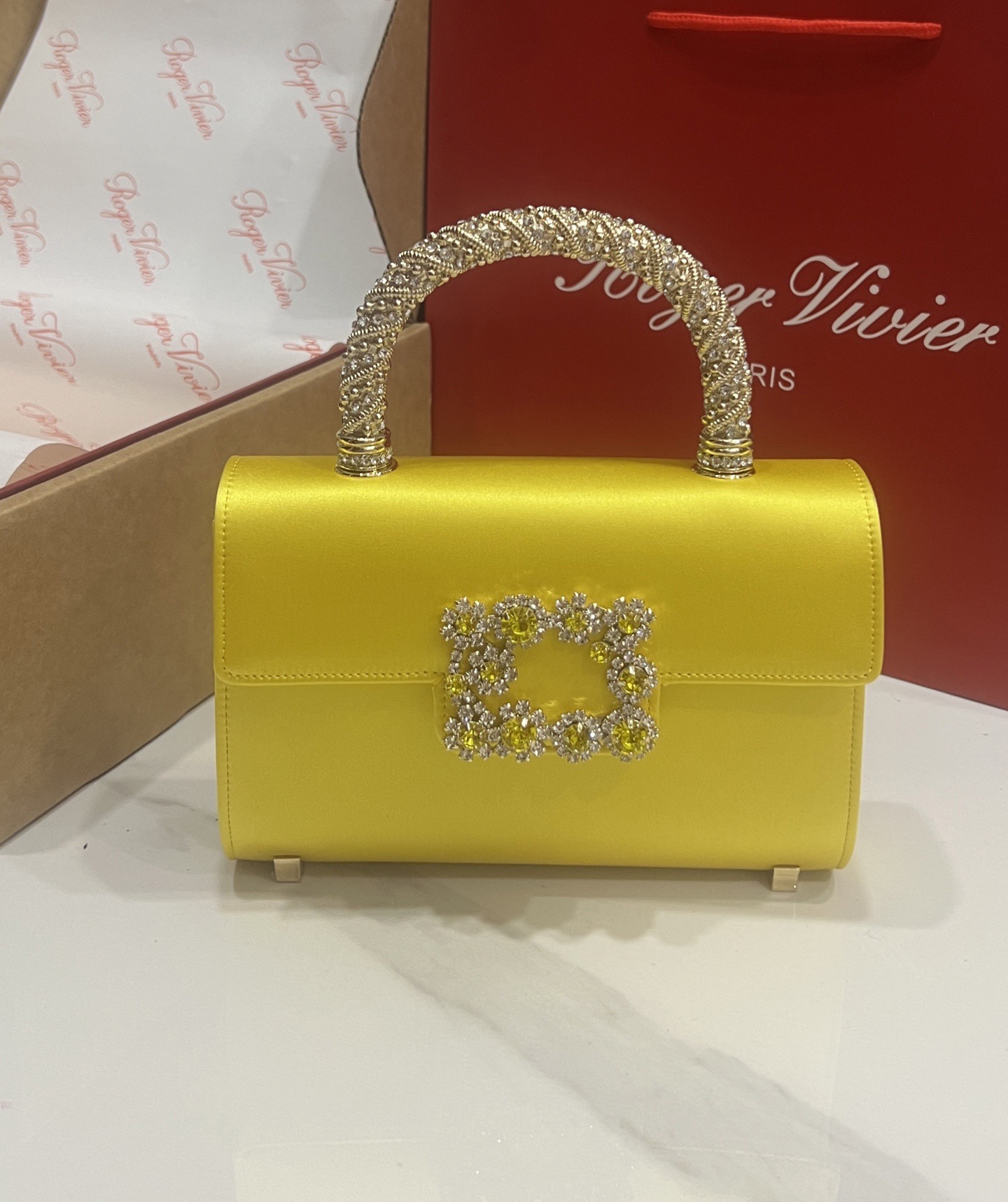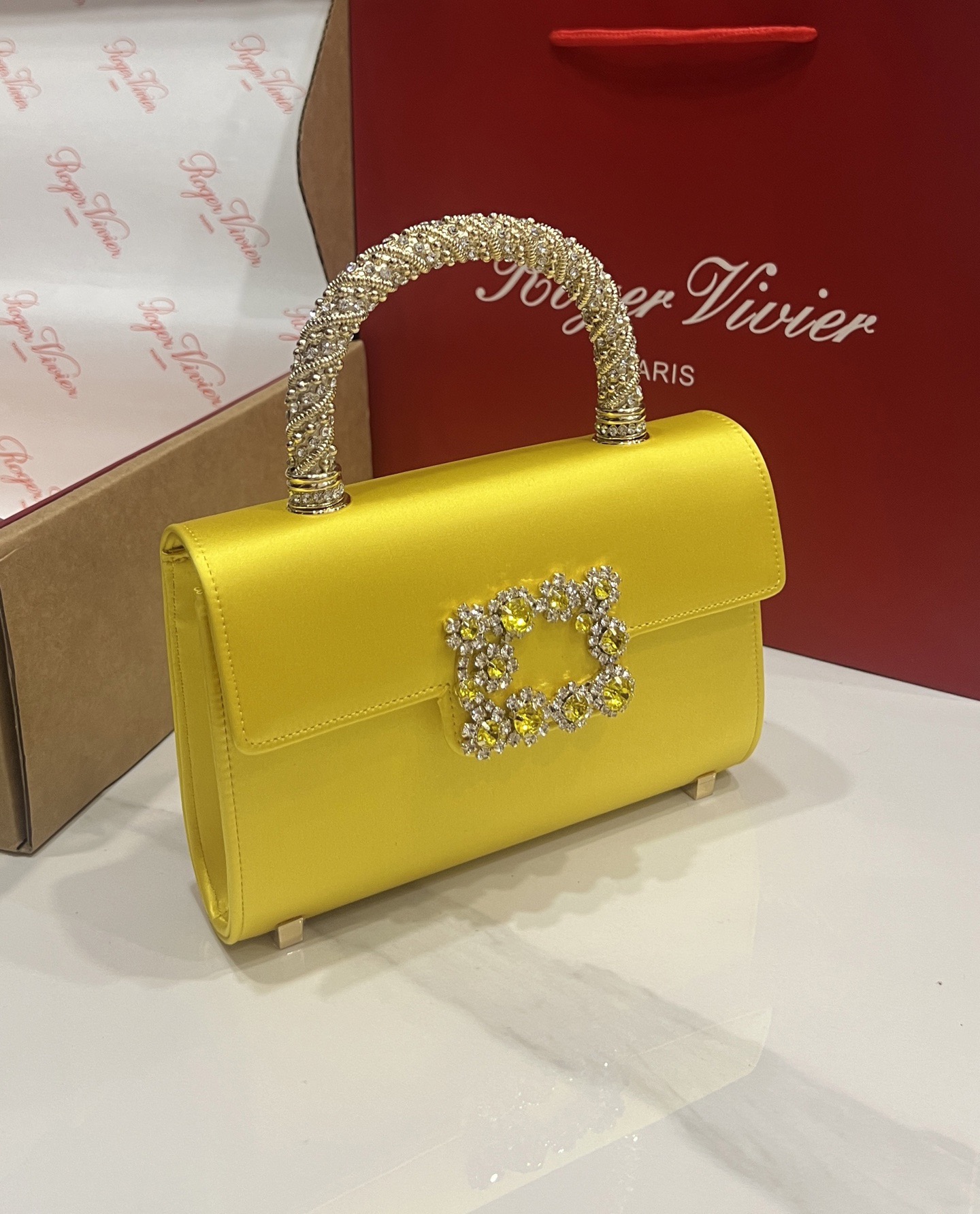 Roger Vivier Efflorescence Mini Bag in Satin Yellow