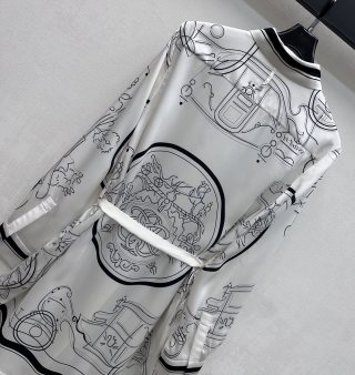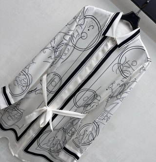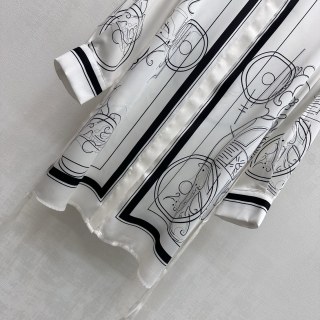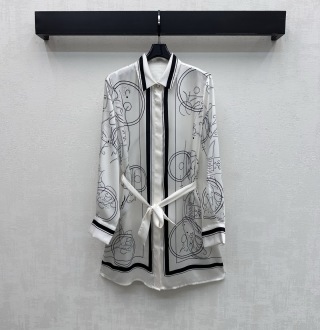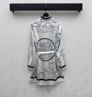 Silk Printed Belt Shirt Dress / Long Sleeve