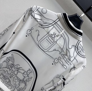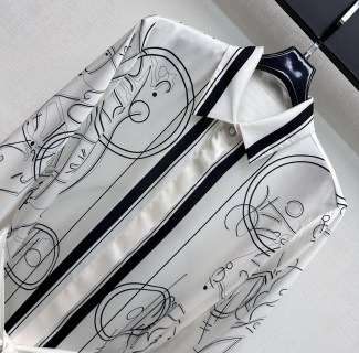 This is a long sleeve shirt dress made from 100% silk with a smooth, breathable texture. The dress features a classic collared neckline, a button-down front, and a removable self-tie belt that gives you styling options and helps define the waist. The standout element is the unique abstract line art print that covers the entire dress, adding visual interest and an artistic feel.