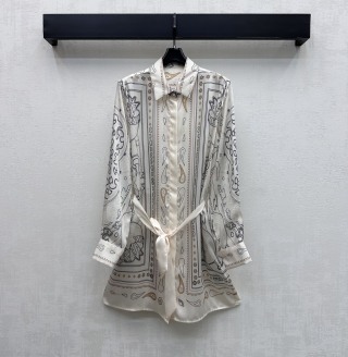 The flowing silk material feels soft, drapes naturally, and is breathable, making it comfortable to wear in various settings. Its detailed print design gives the dress visual interest and a refined style suitable for both casual outings and relaxed vacation wear.